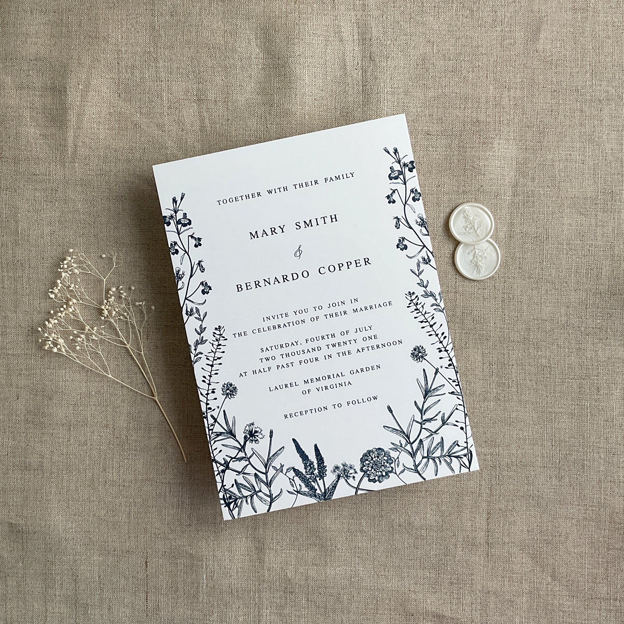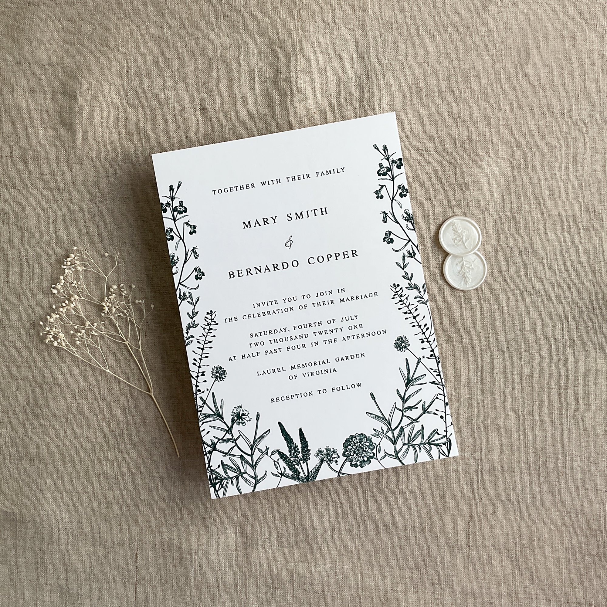 A7 English botanical card printed cards - raised printing -