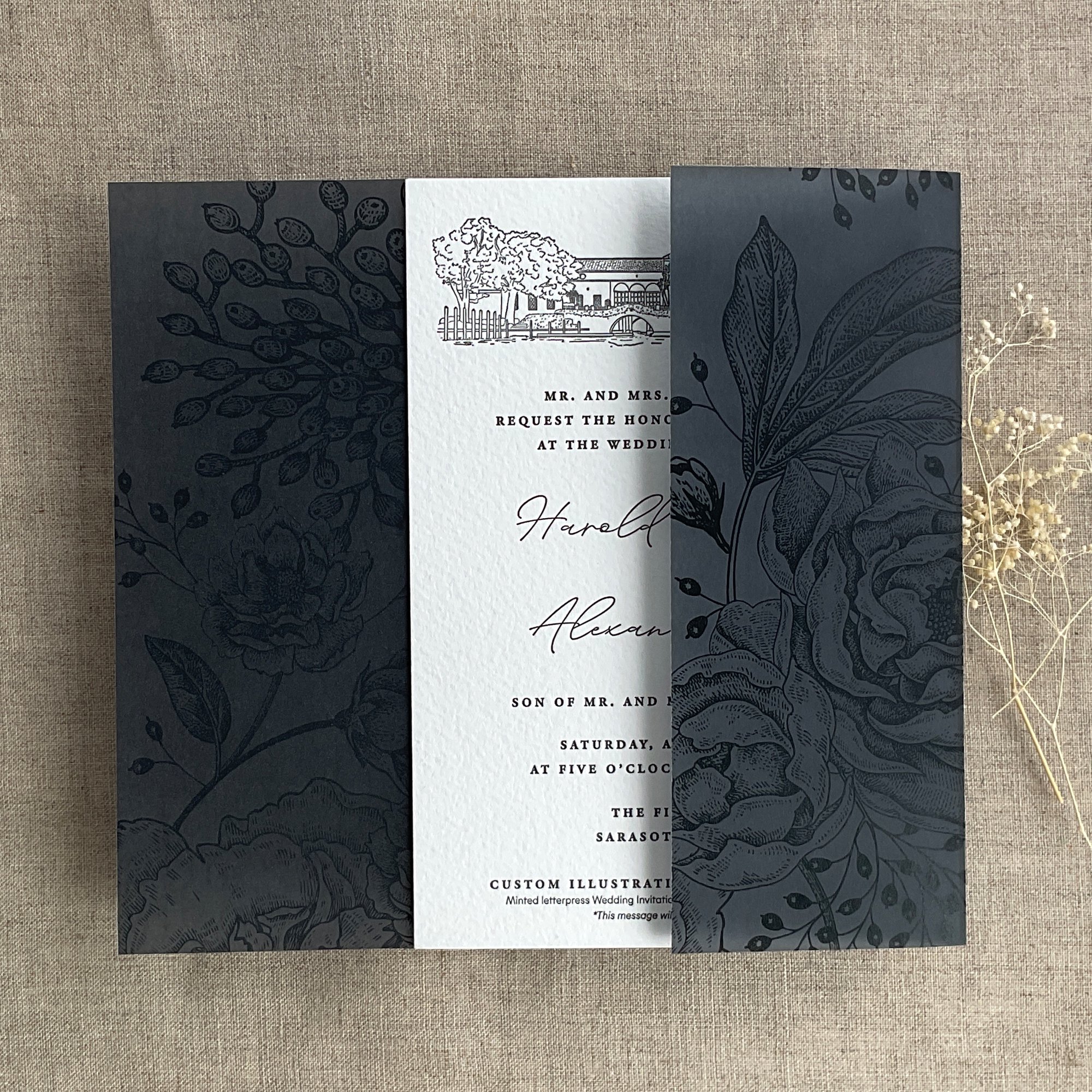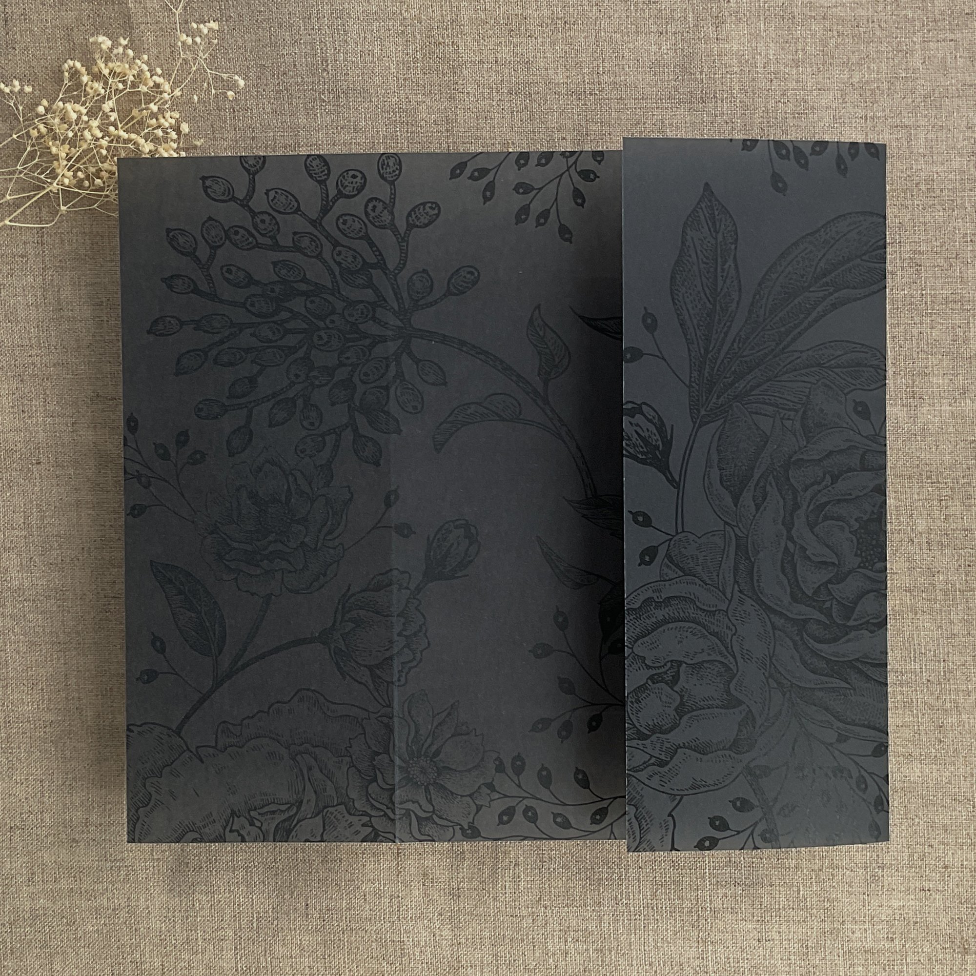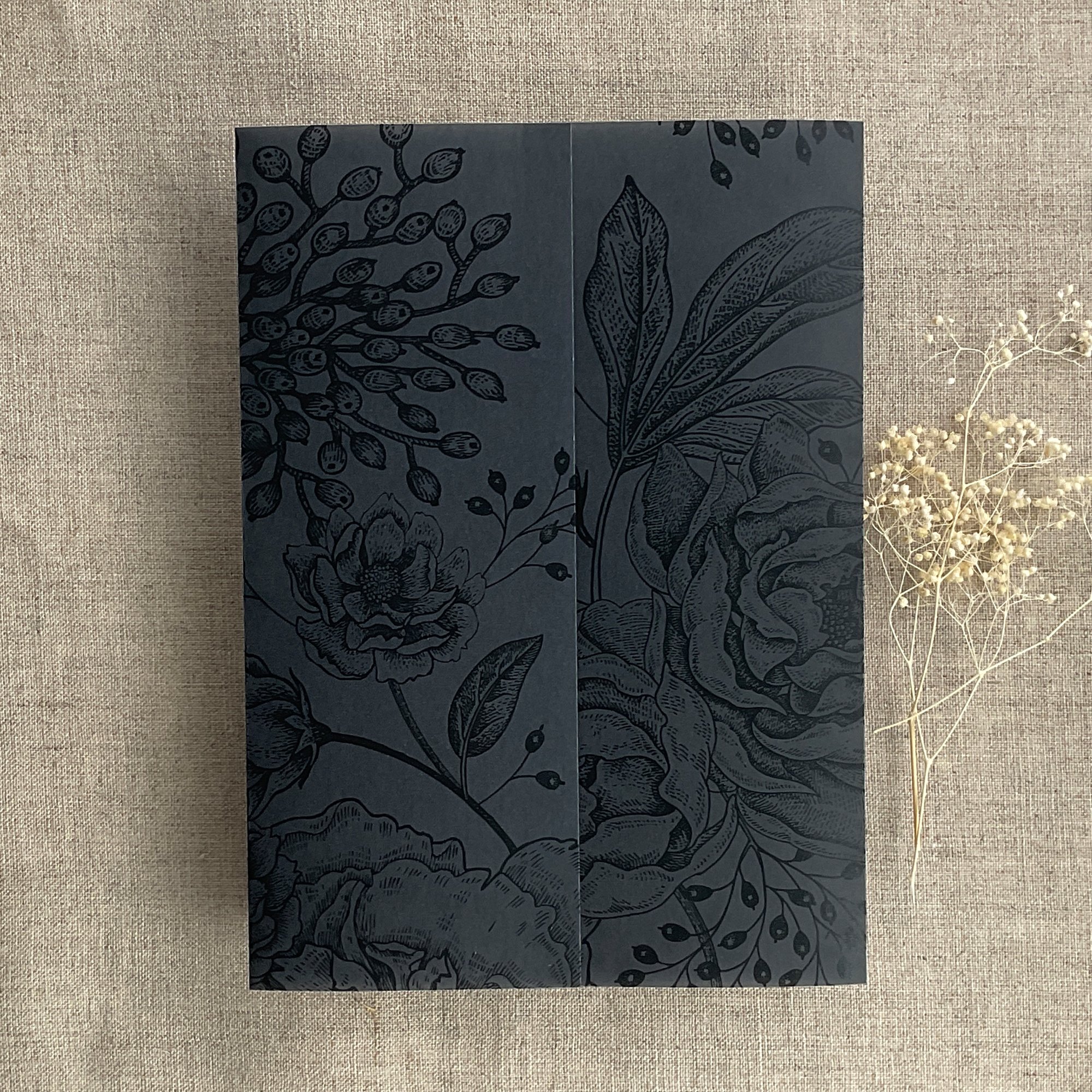 black vintage peony and berries printed vellum wrap for 5x7 card Pack of 10