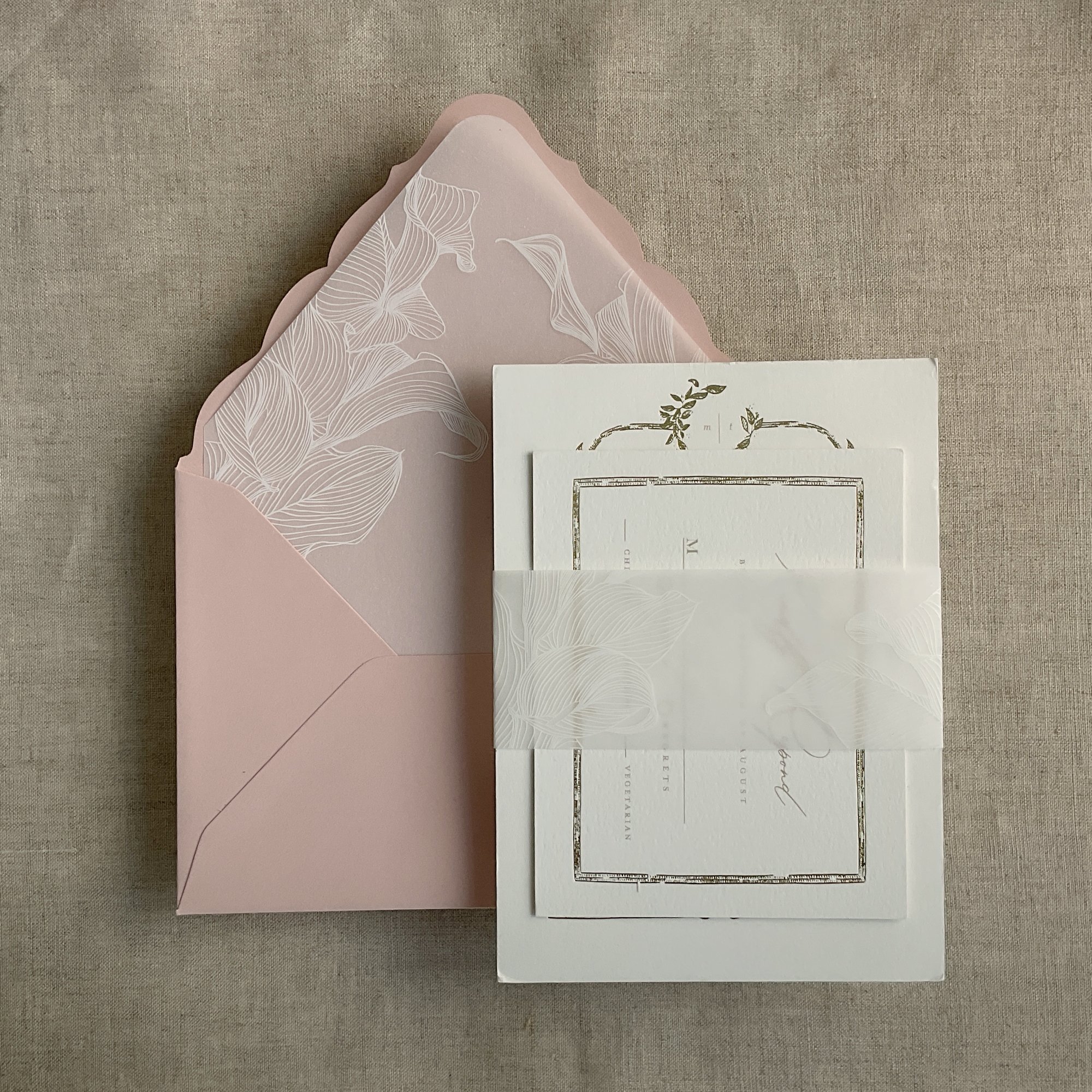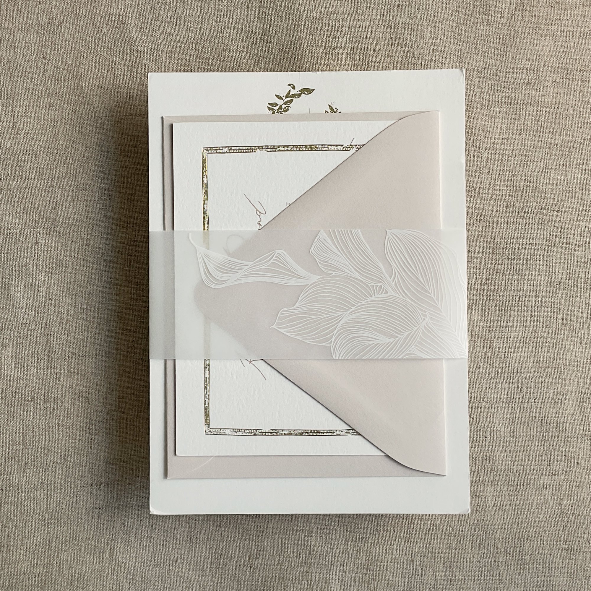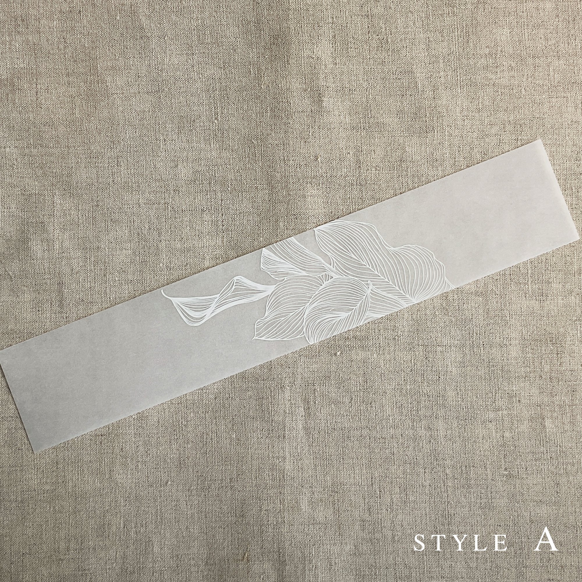 Calla lily white ink printed 2 inch wide white translucent floral Vellum belly band for 5x7 inches card