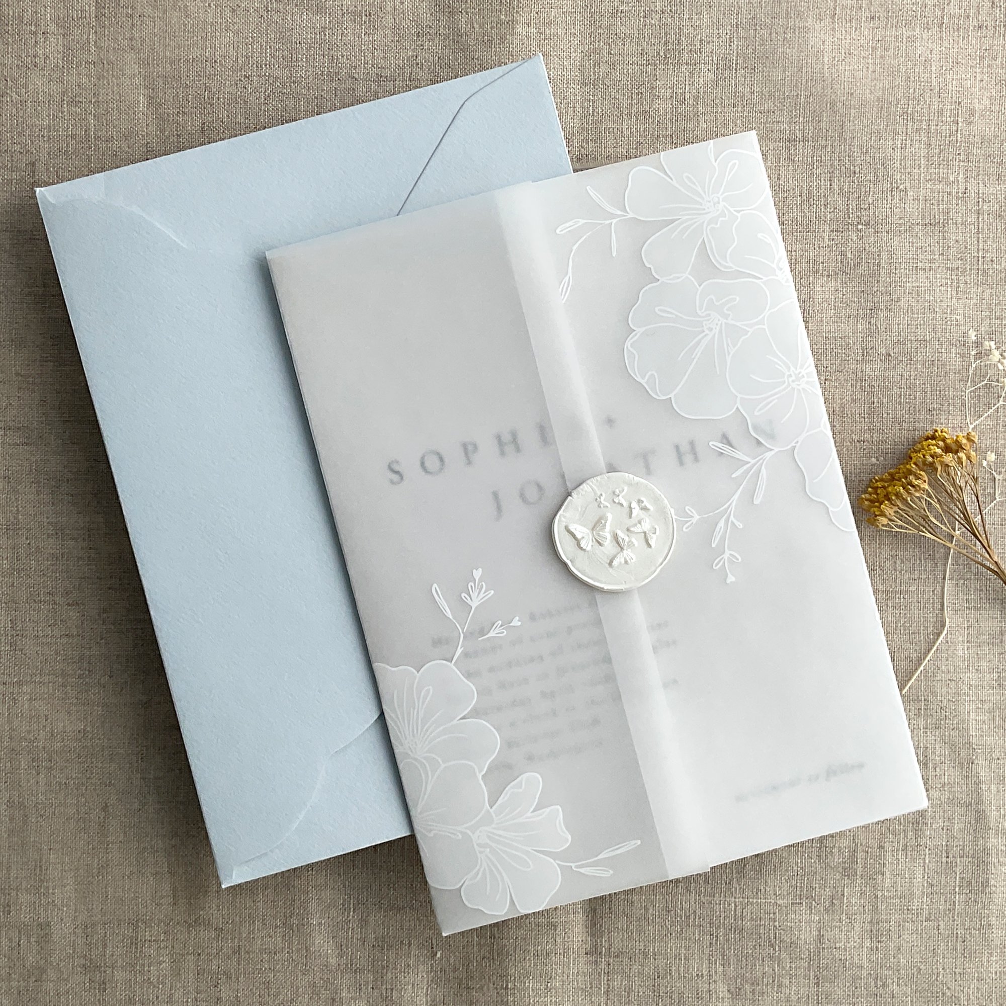 Enhance your Save the Dates or Invitation stack with a wrap of sheer vellum beauty.