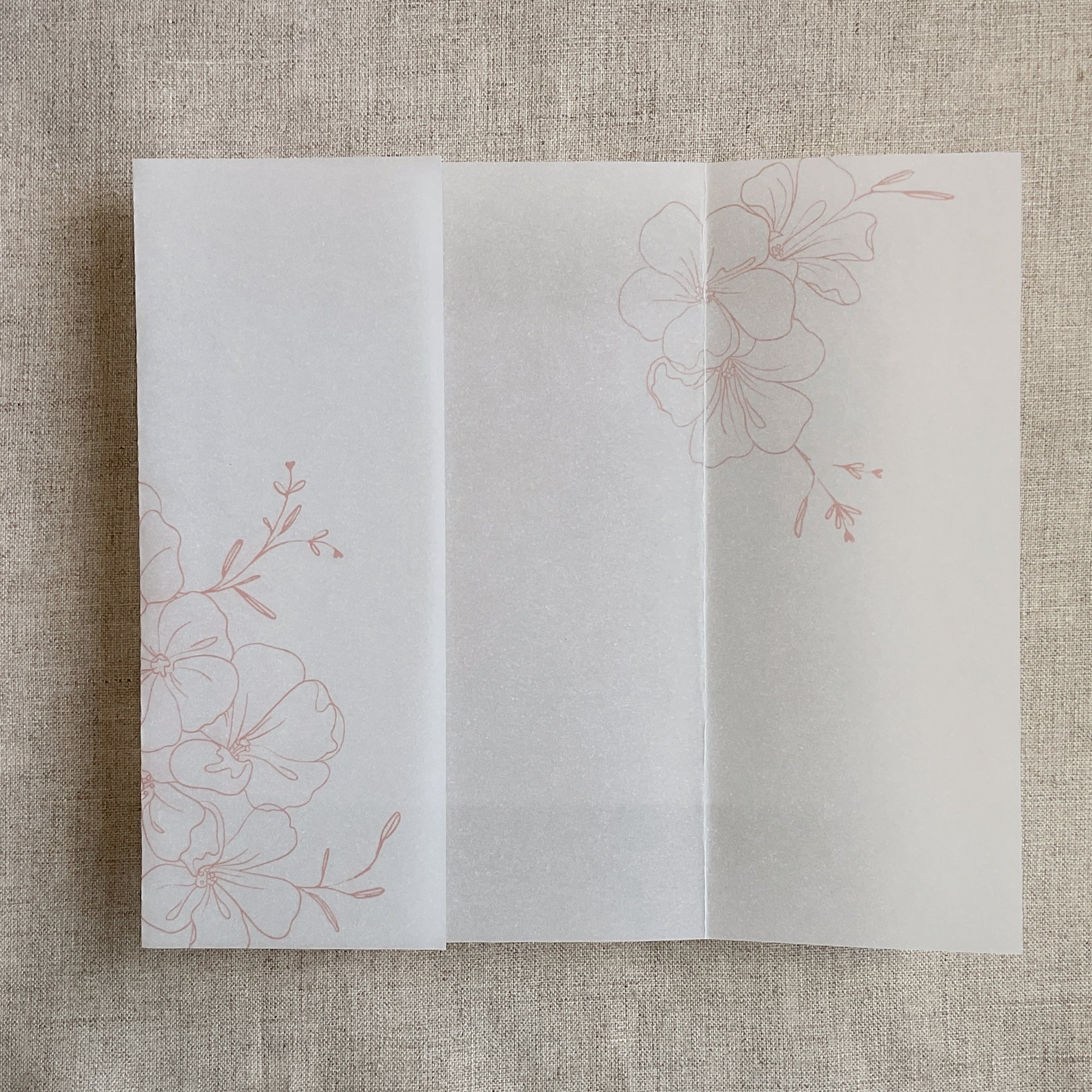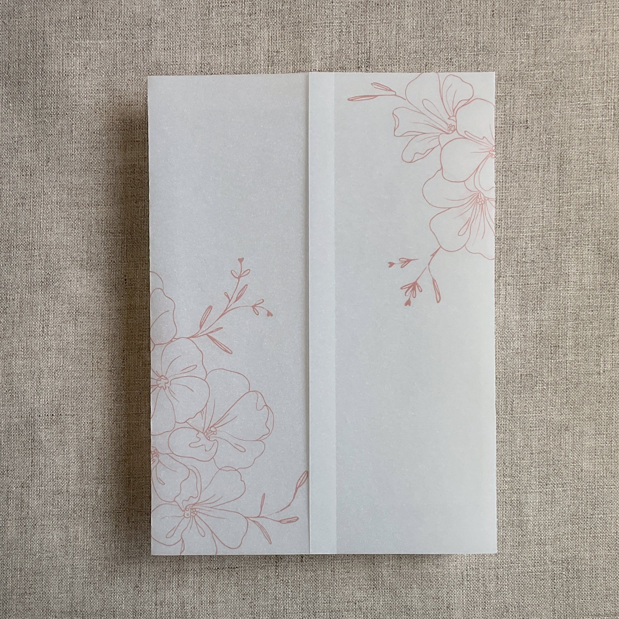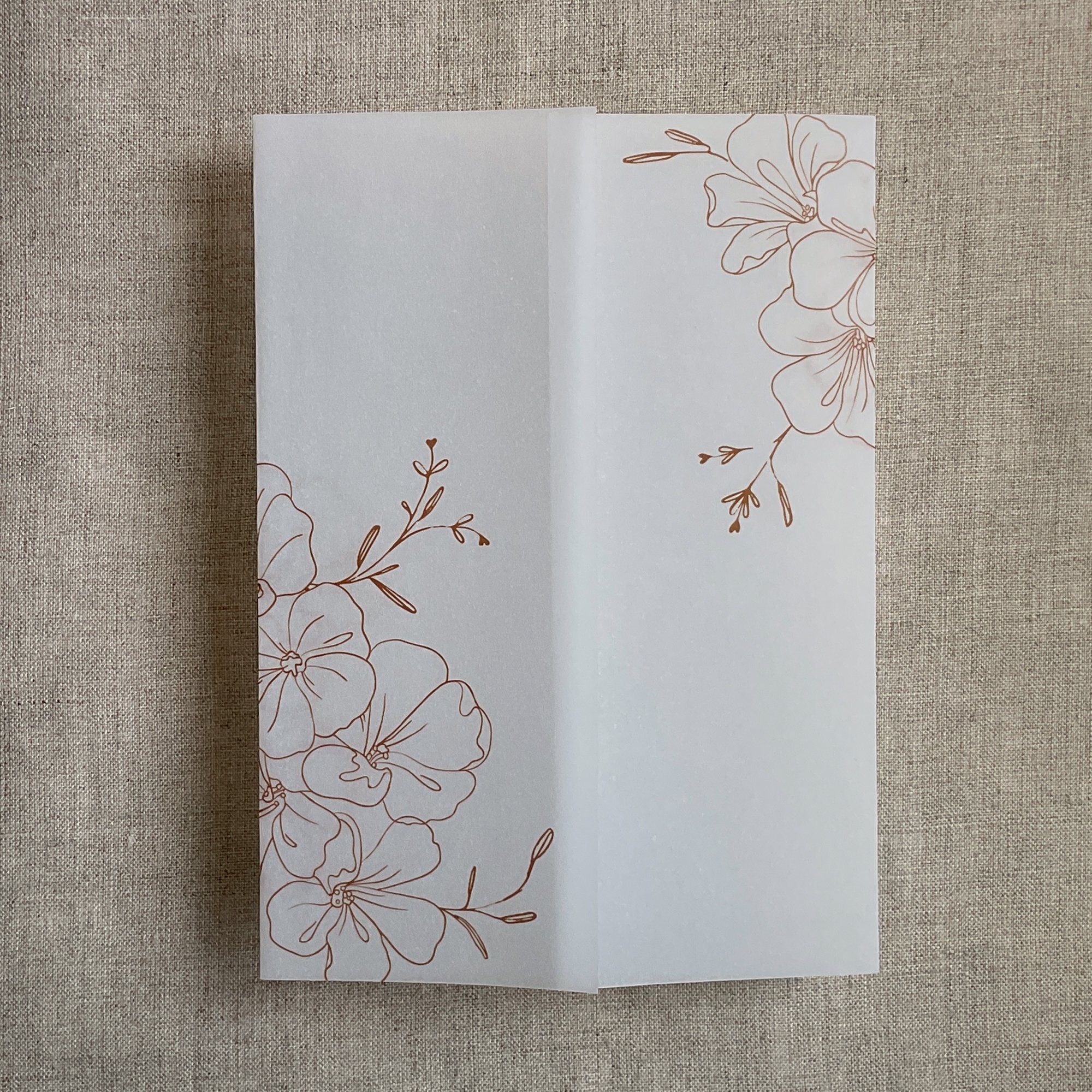 Camelia floral printed vellum wrap for 5x7 inches card PACK of 10