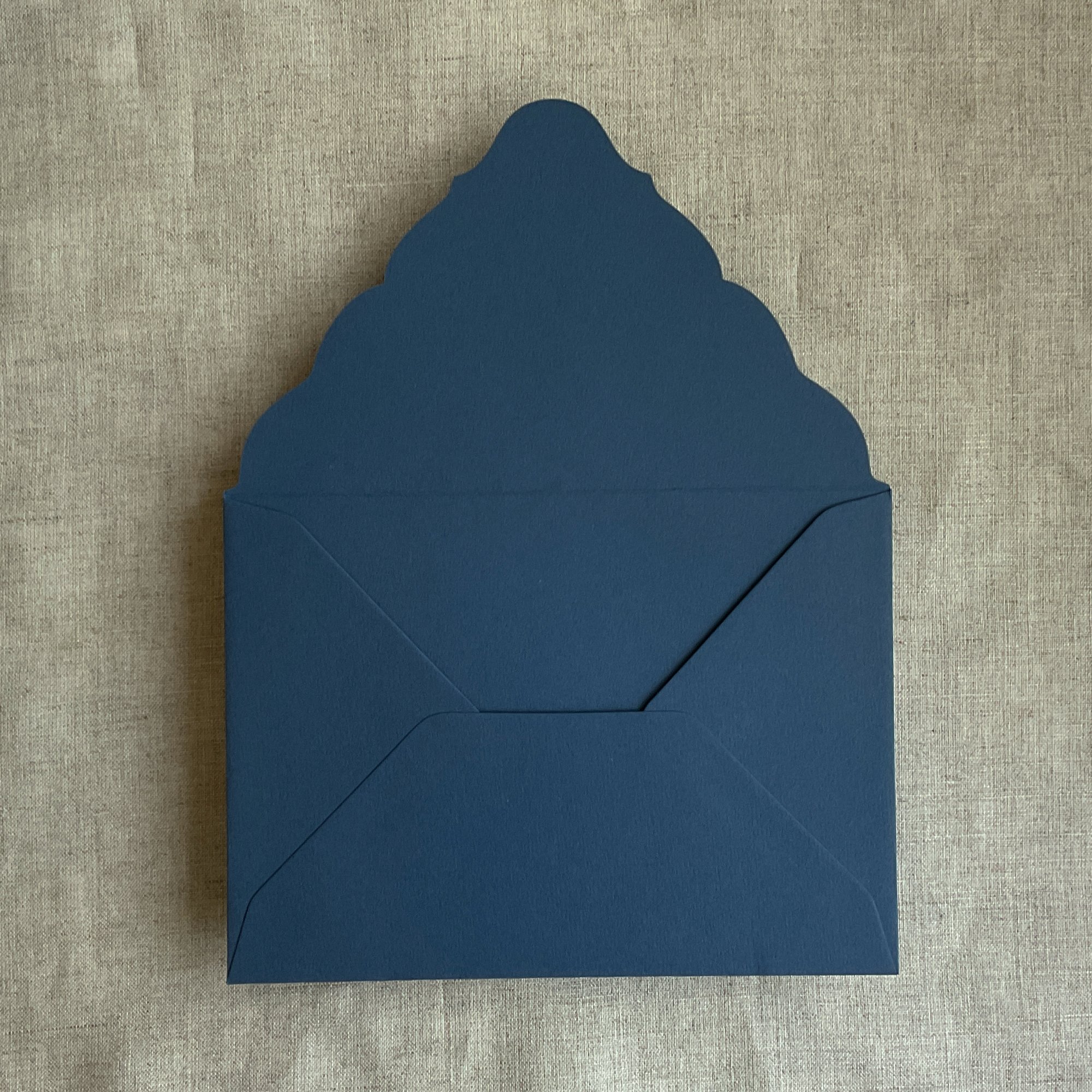This envelope features an elegantly shaped laser-cut flap that adds a touch of classic beauty, perfectly complementing invitations, liners, and other stationery.