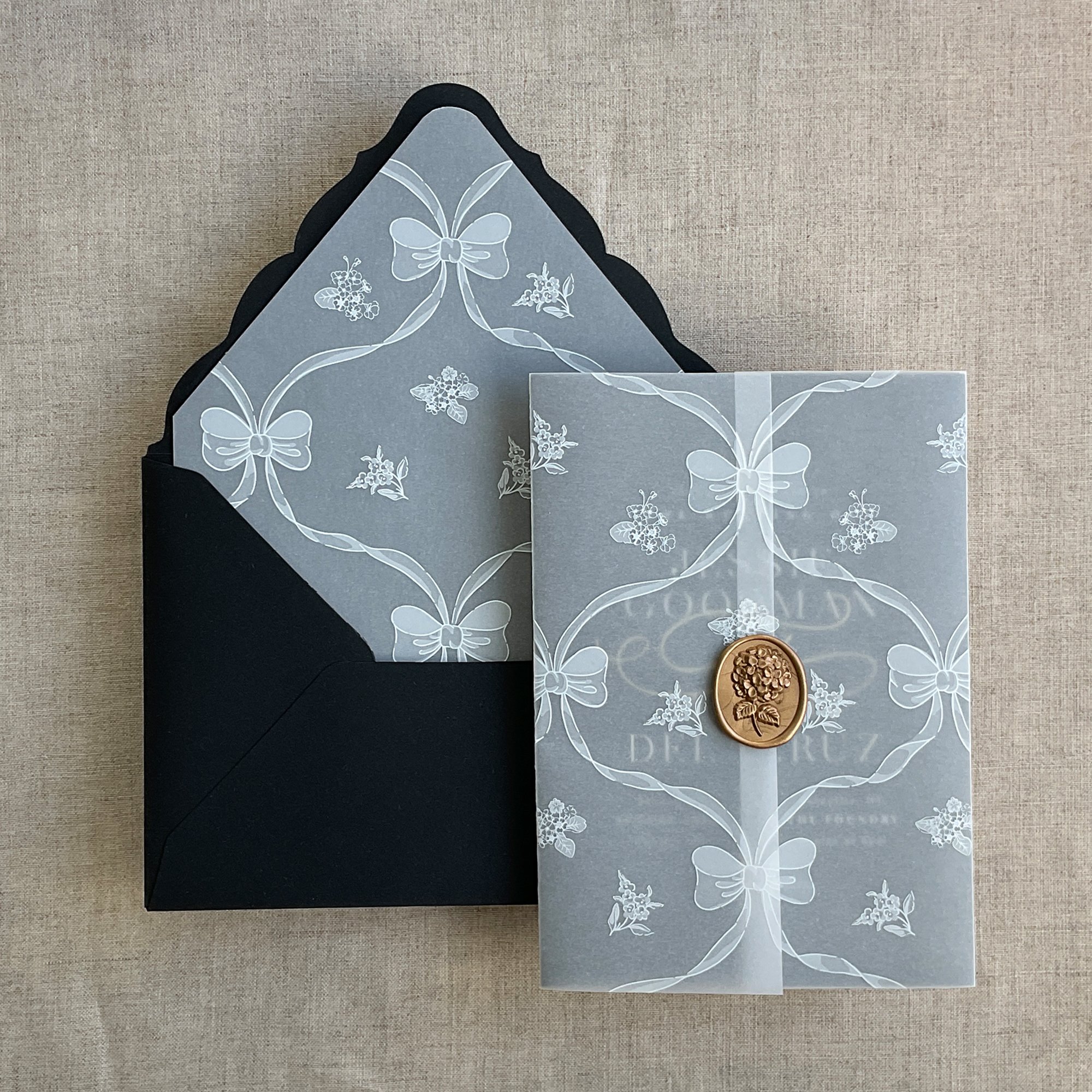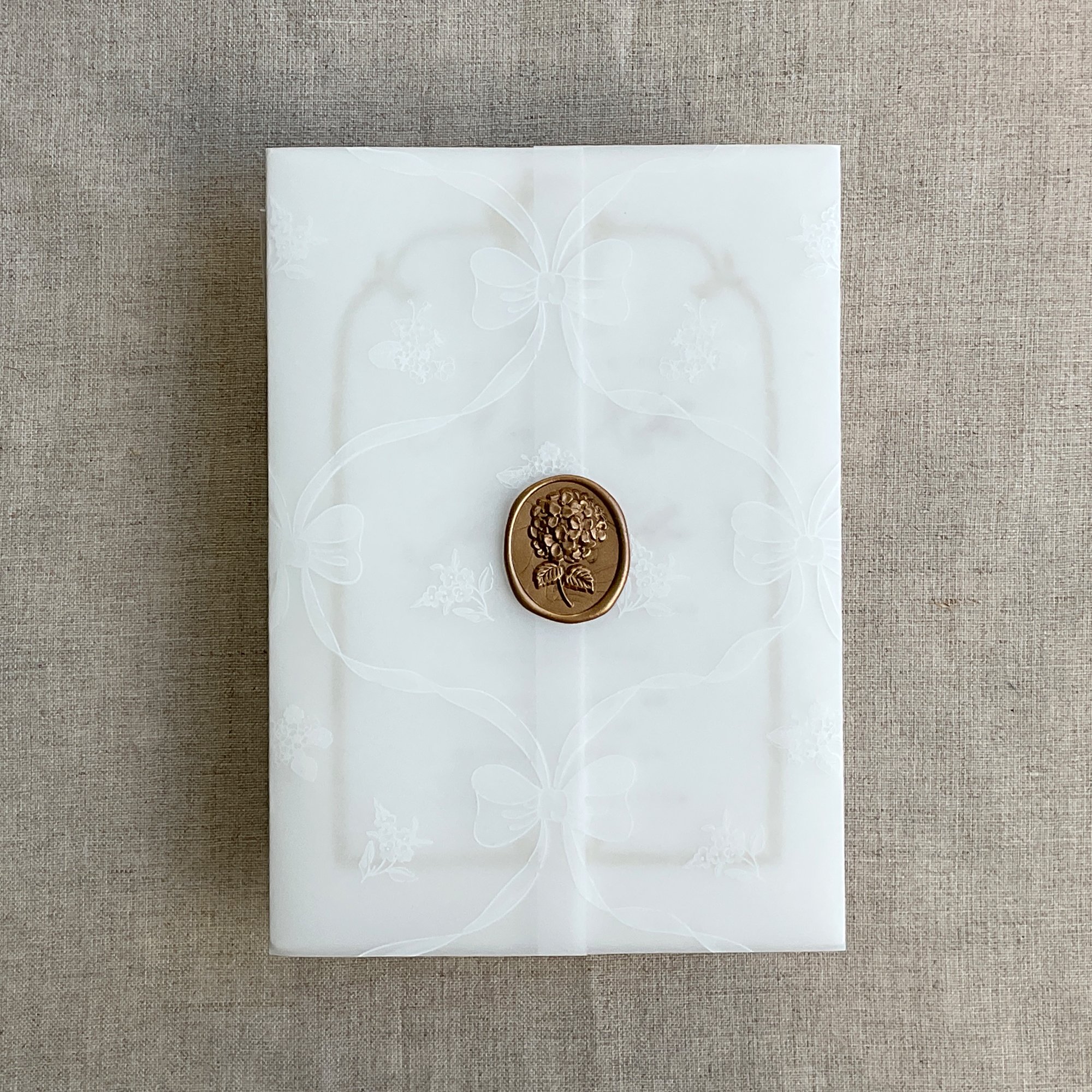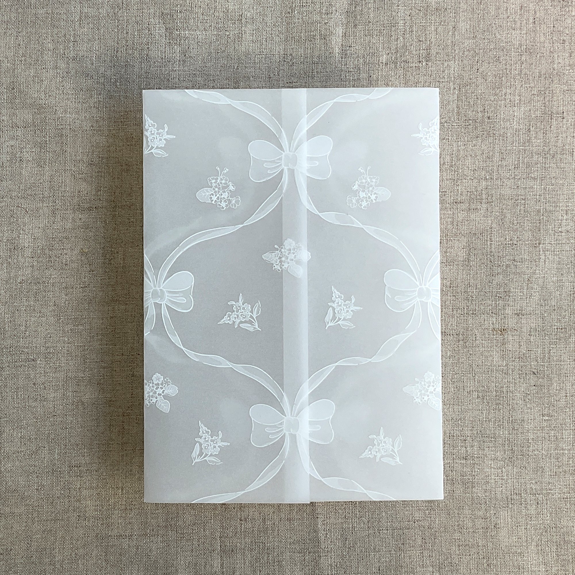 Genie floral bows white printing vellum wrap for 5x7 card | pack of 10