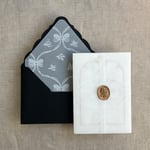on 29 lb glama natural white translucent vellum paper / Printed in-house by ivory invitations Made In USA