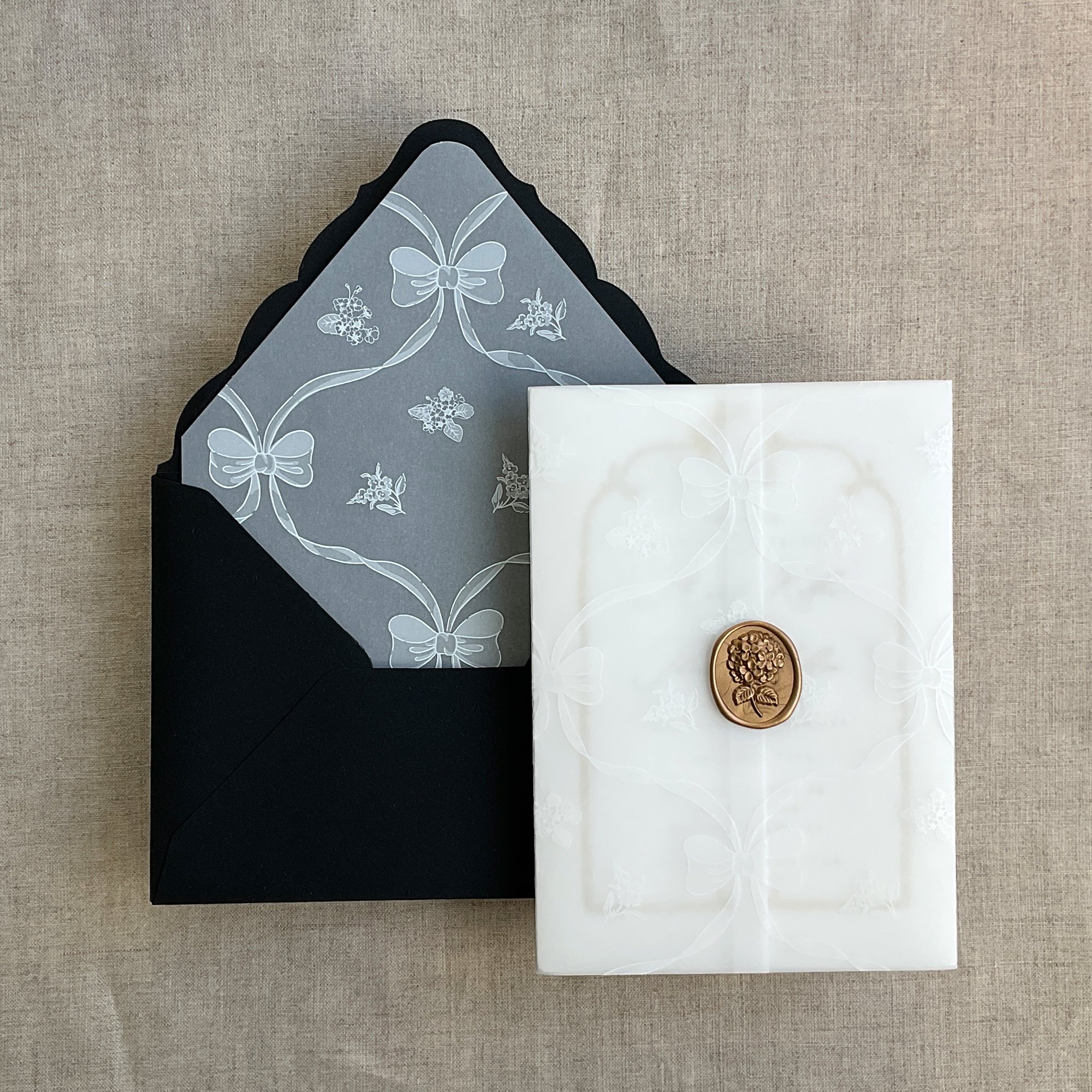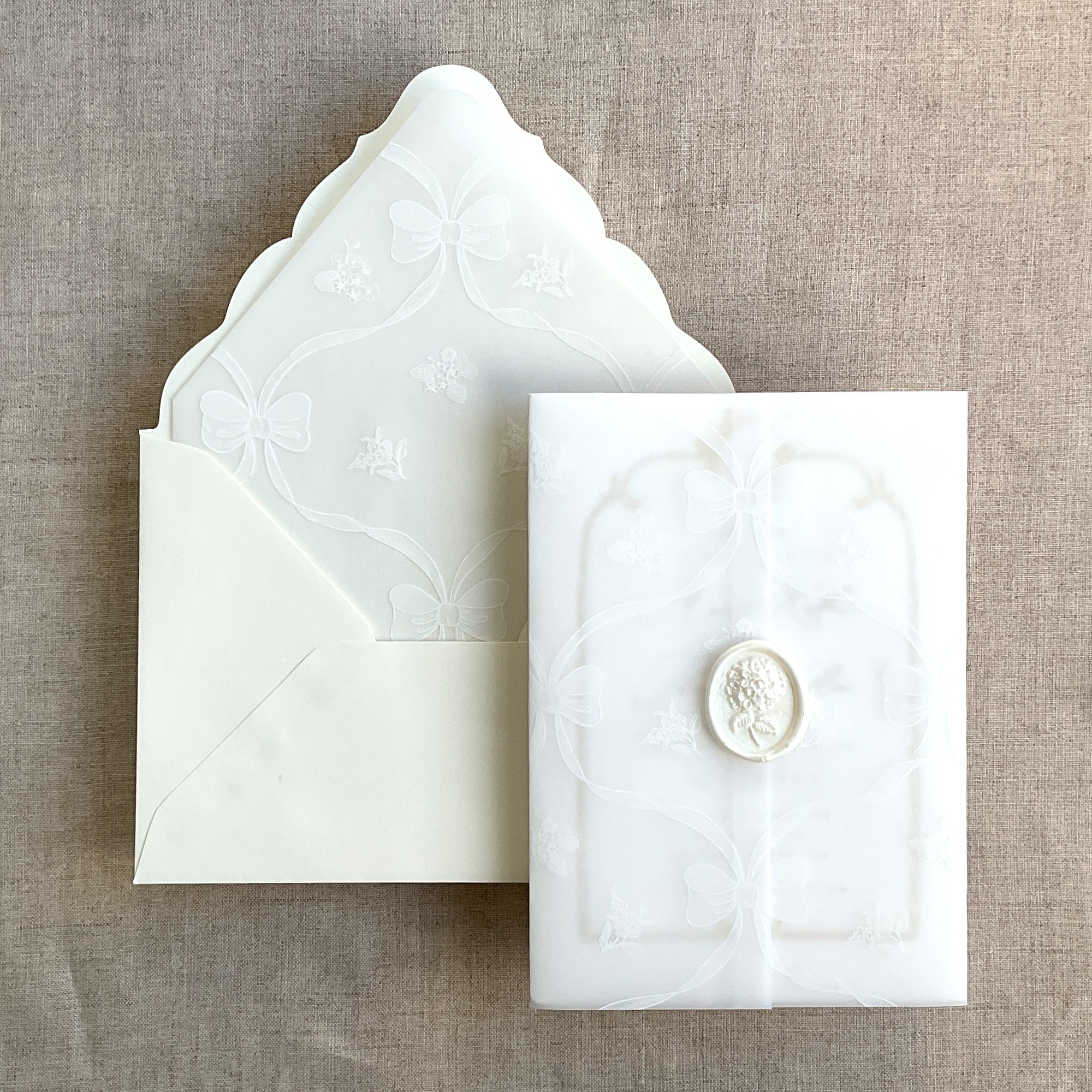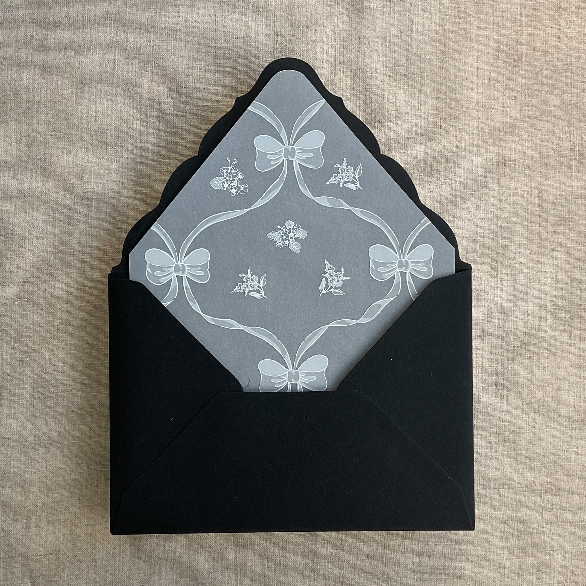 Genie floral bow white ink printed vellum liner A7 euro flap envelope PACK of 10