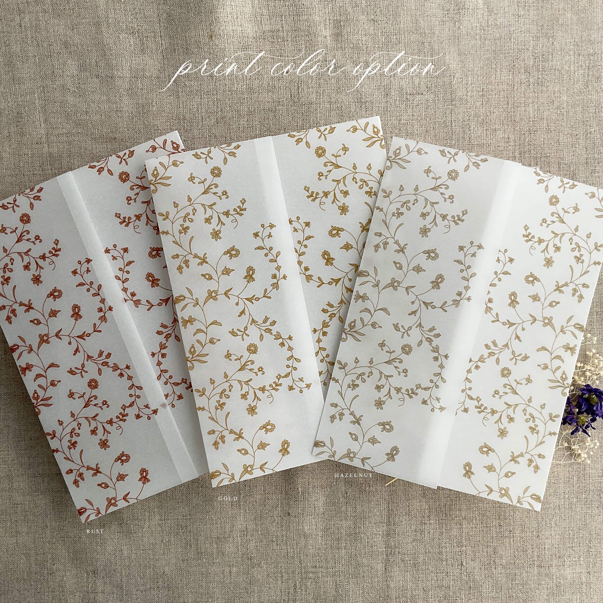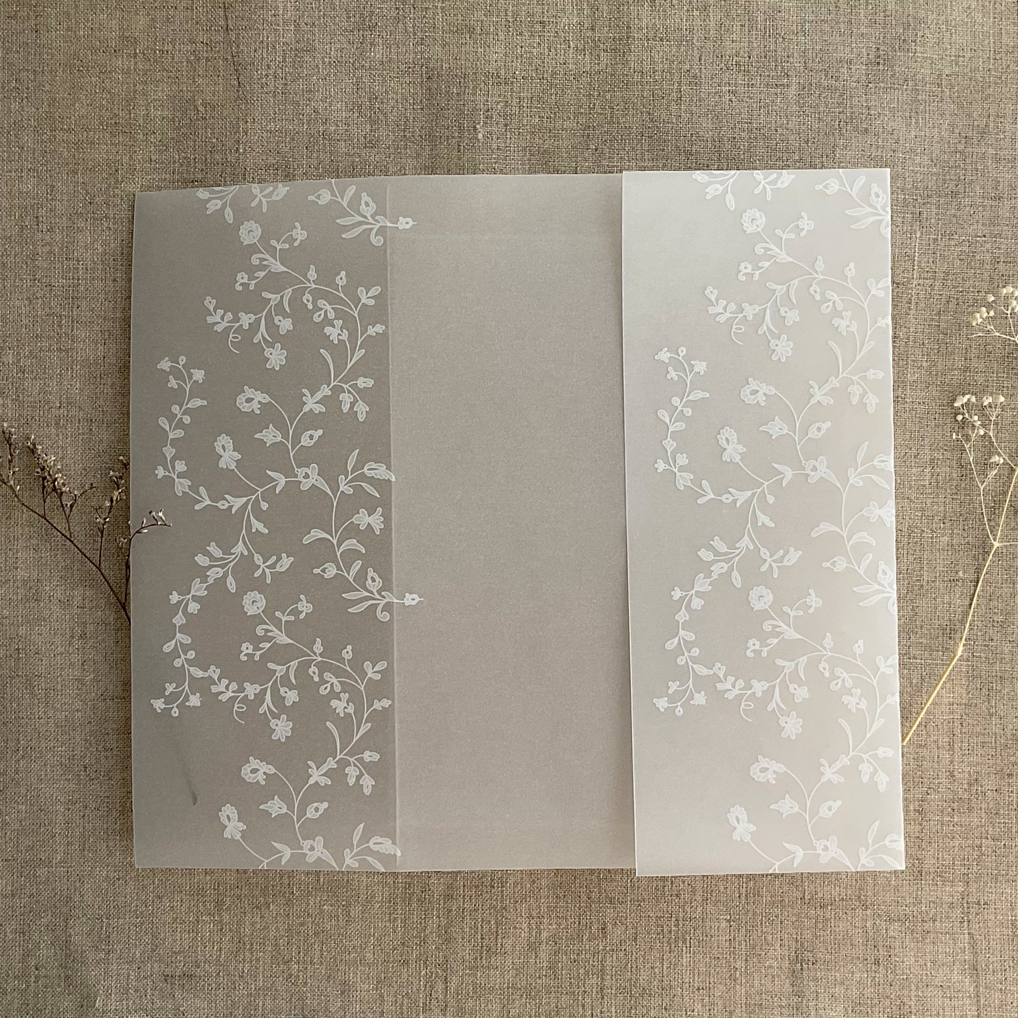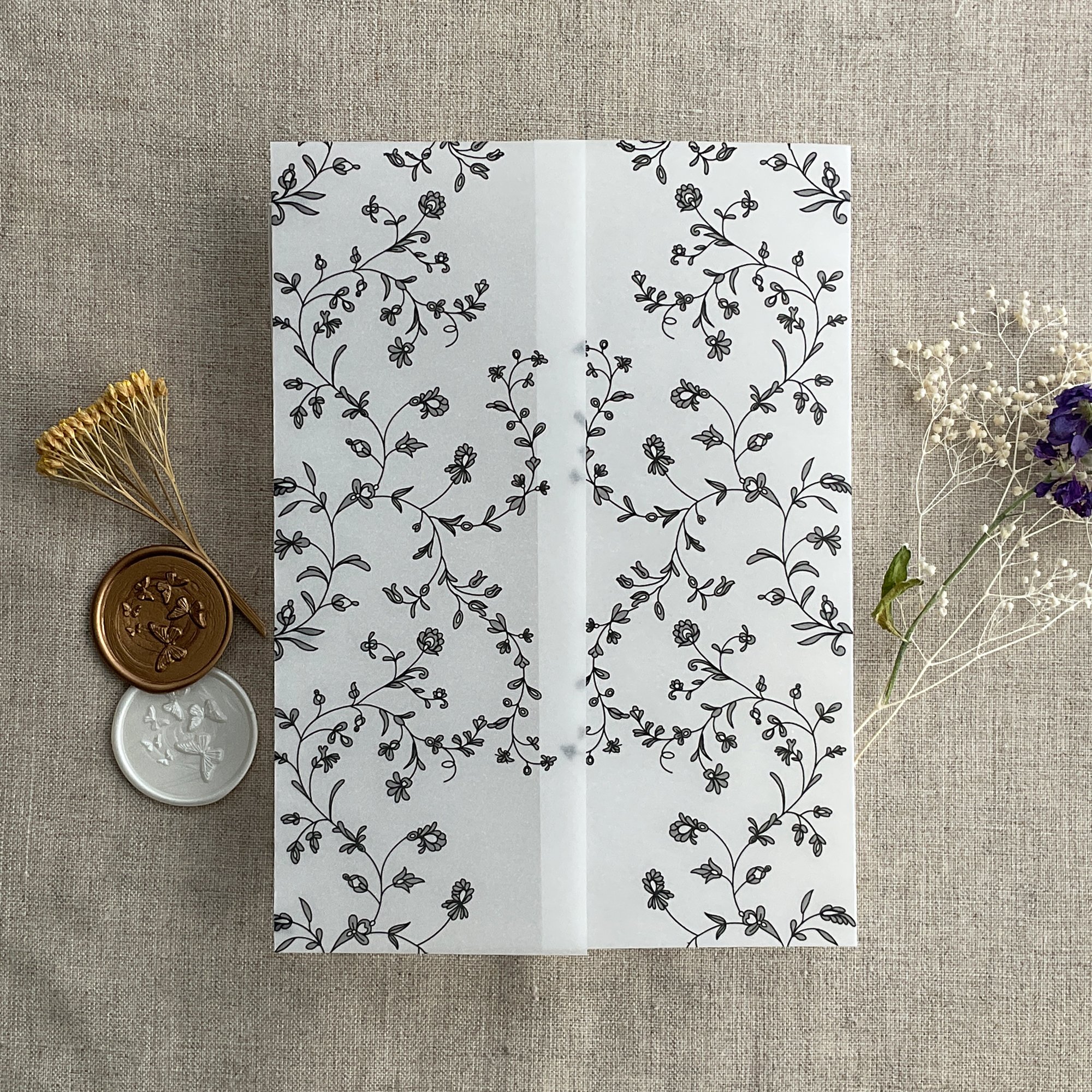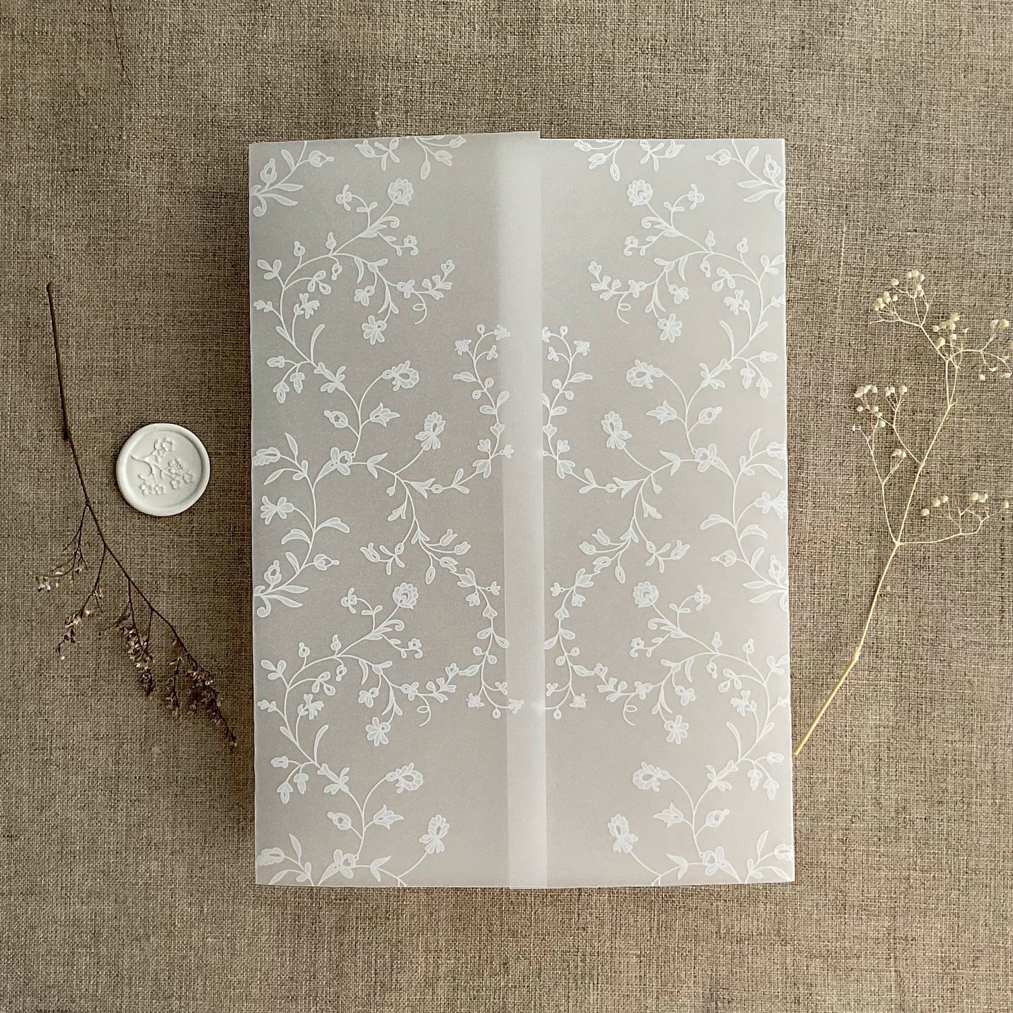 Dainty floral printed white translucent vellum wrap for 5x7 inches card PACK of 10