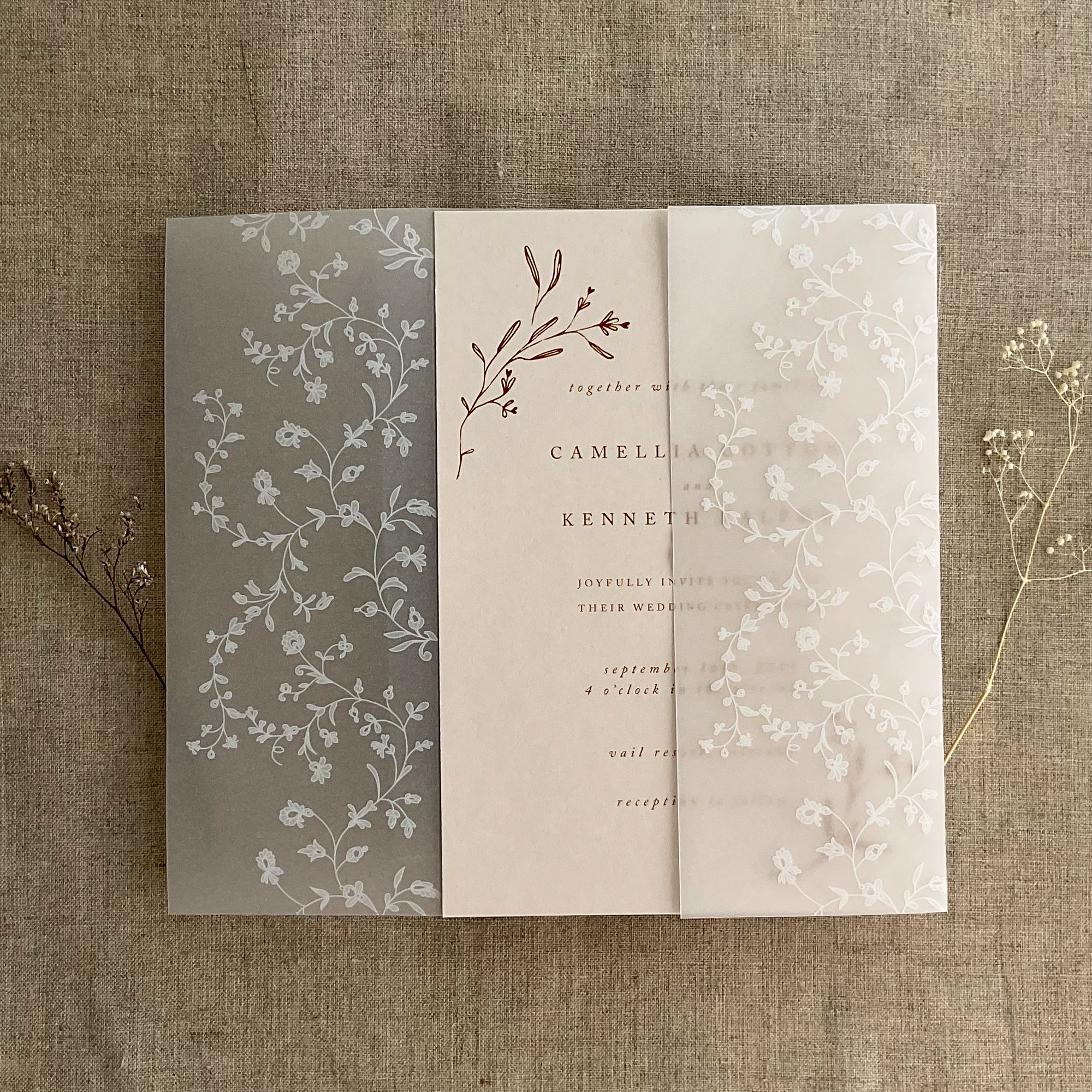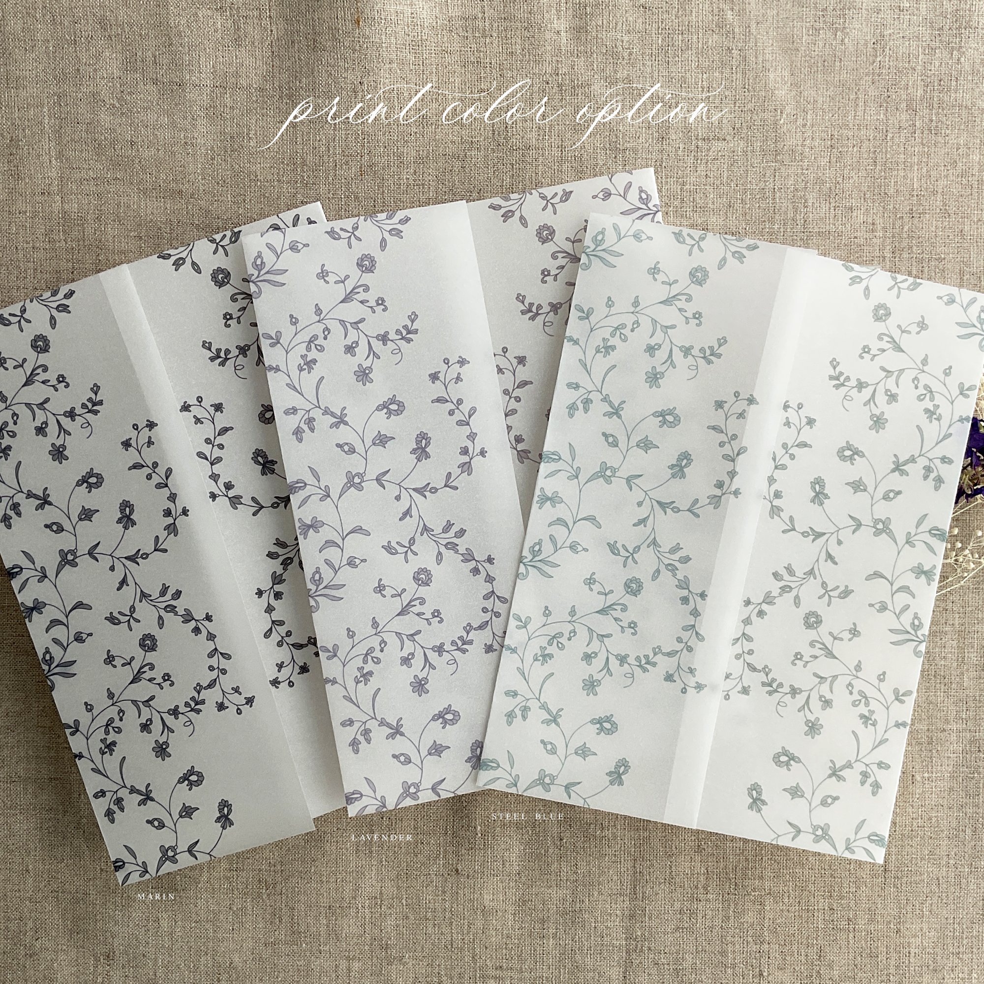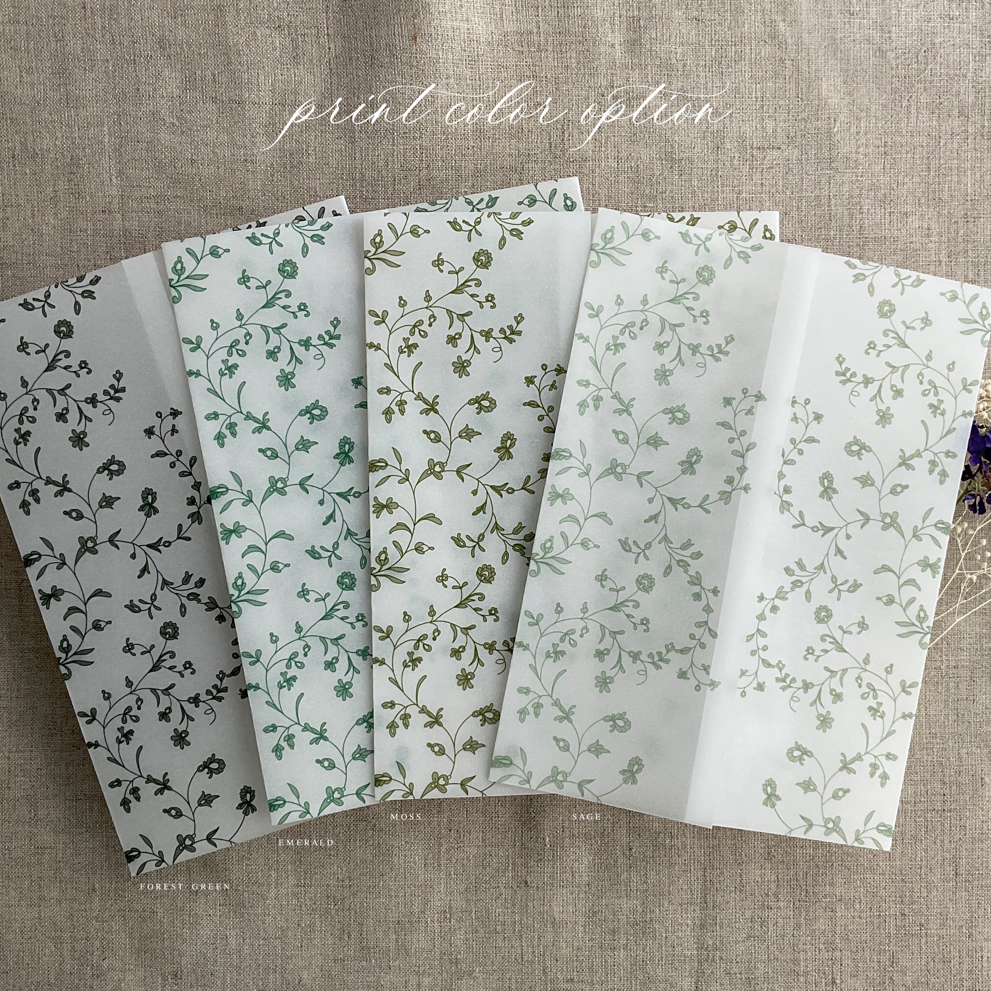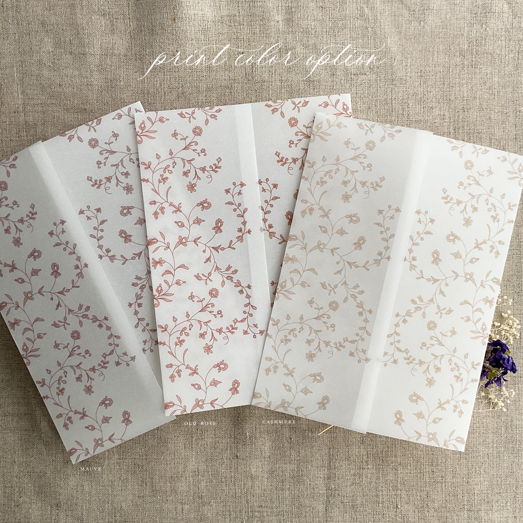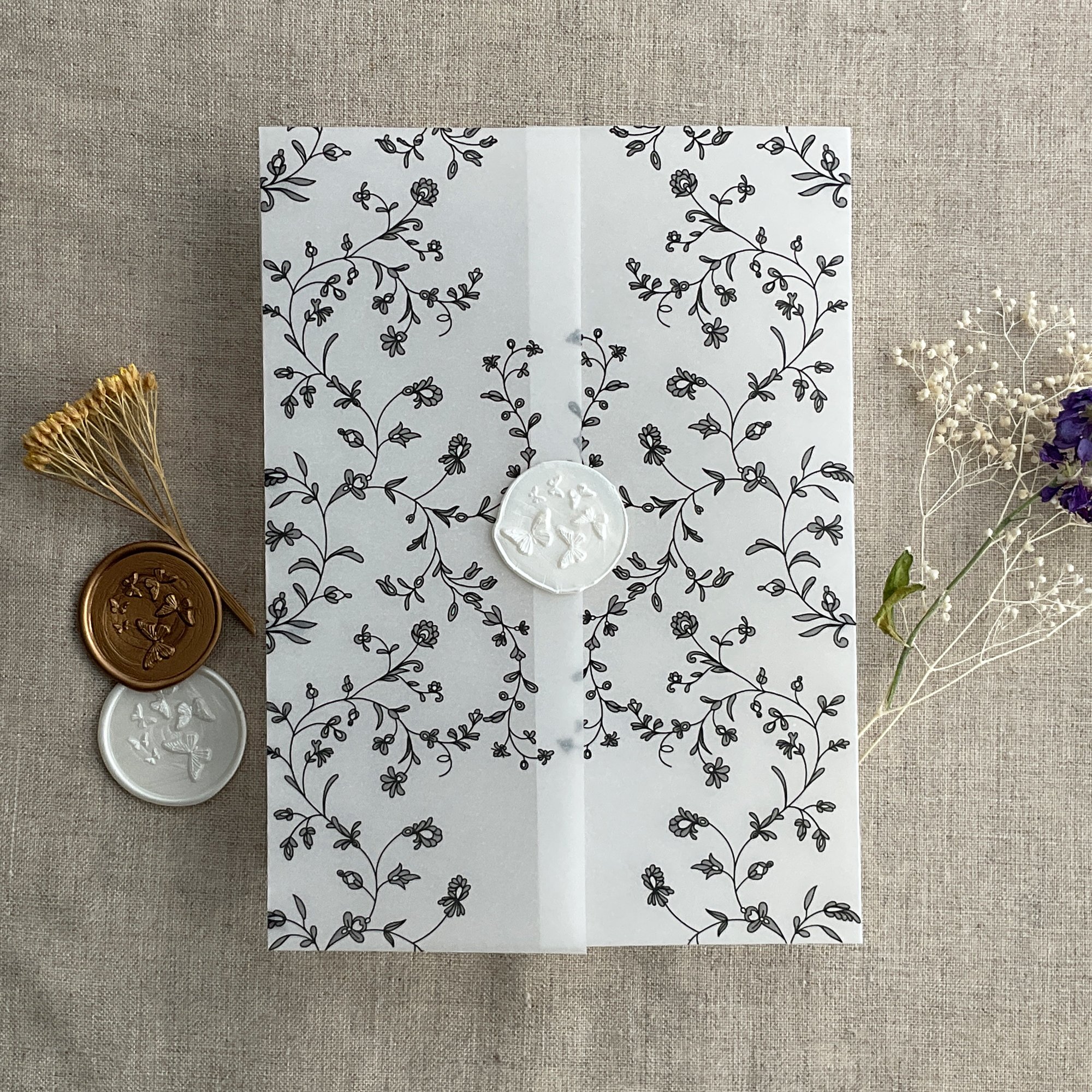 Dainty floral printed white translucent vellum wrap for 5x7 inches card PACK of 10
