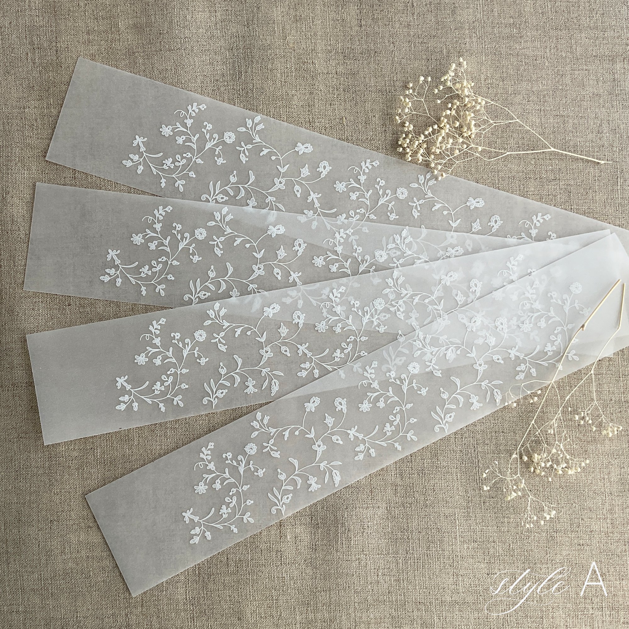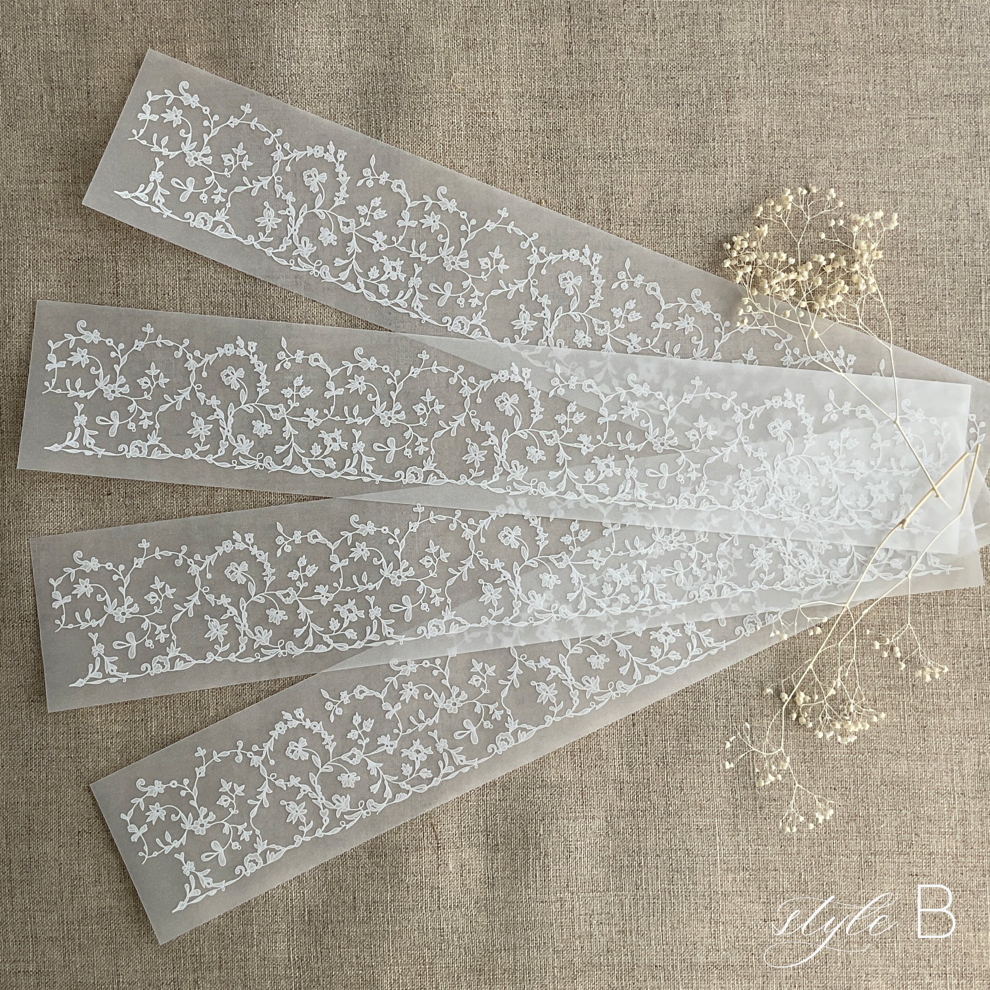 Dainty floral vines lace white ink printed vellum paper belly bands PACK of 10