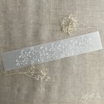 • 11"(L) x 2"(H) / 29# white vellum printed in white ink