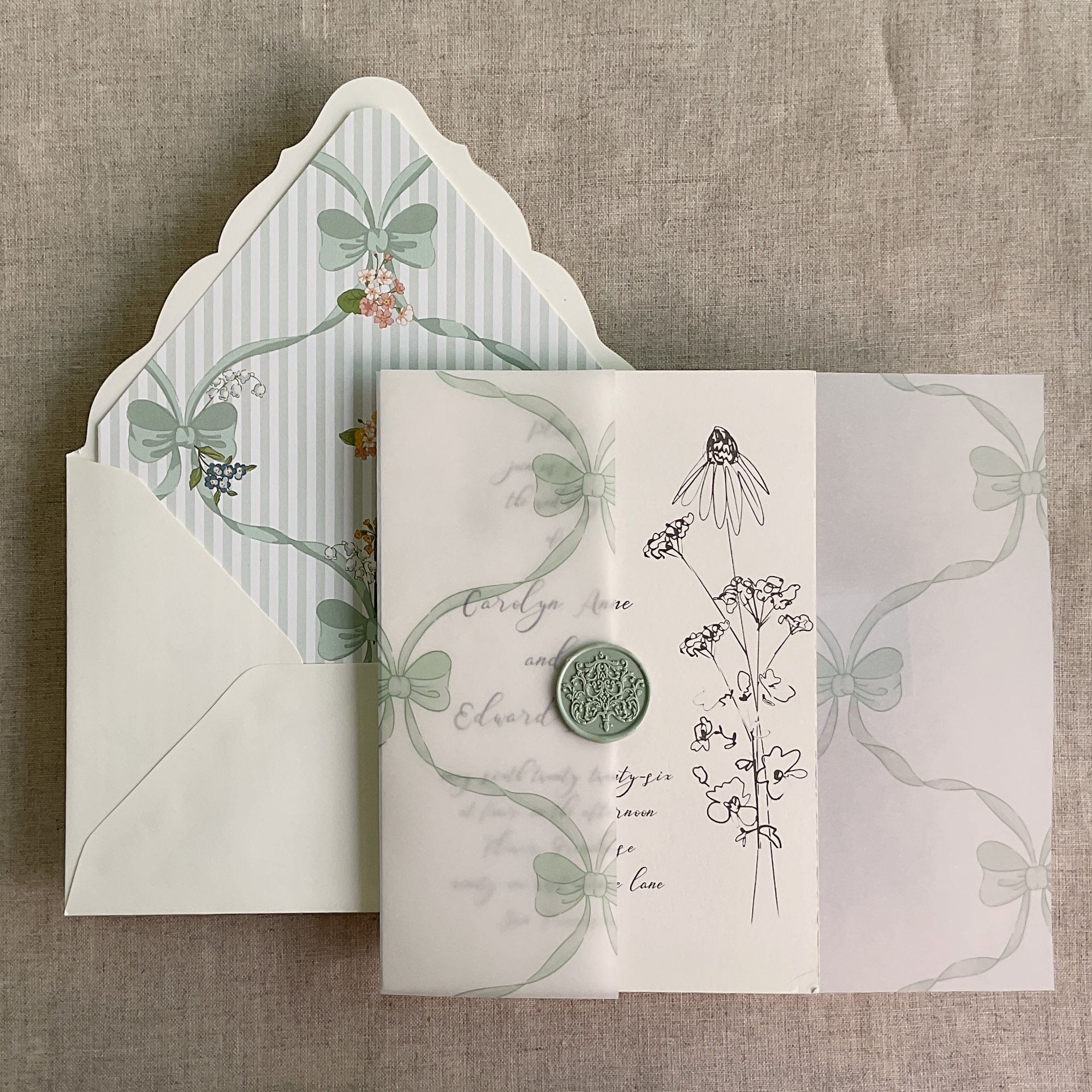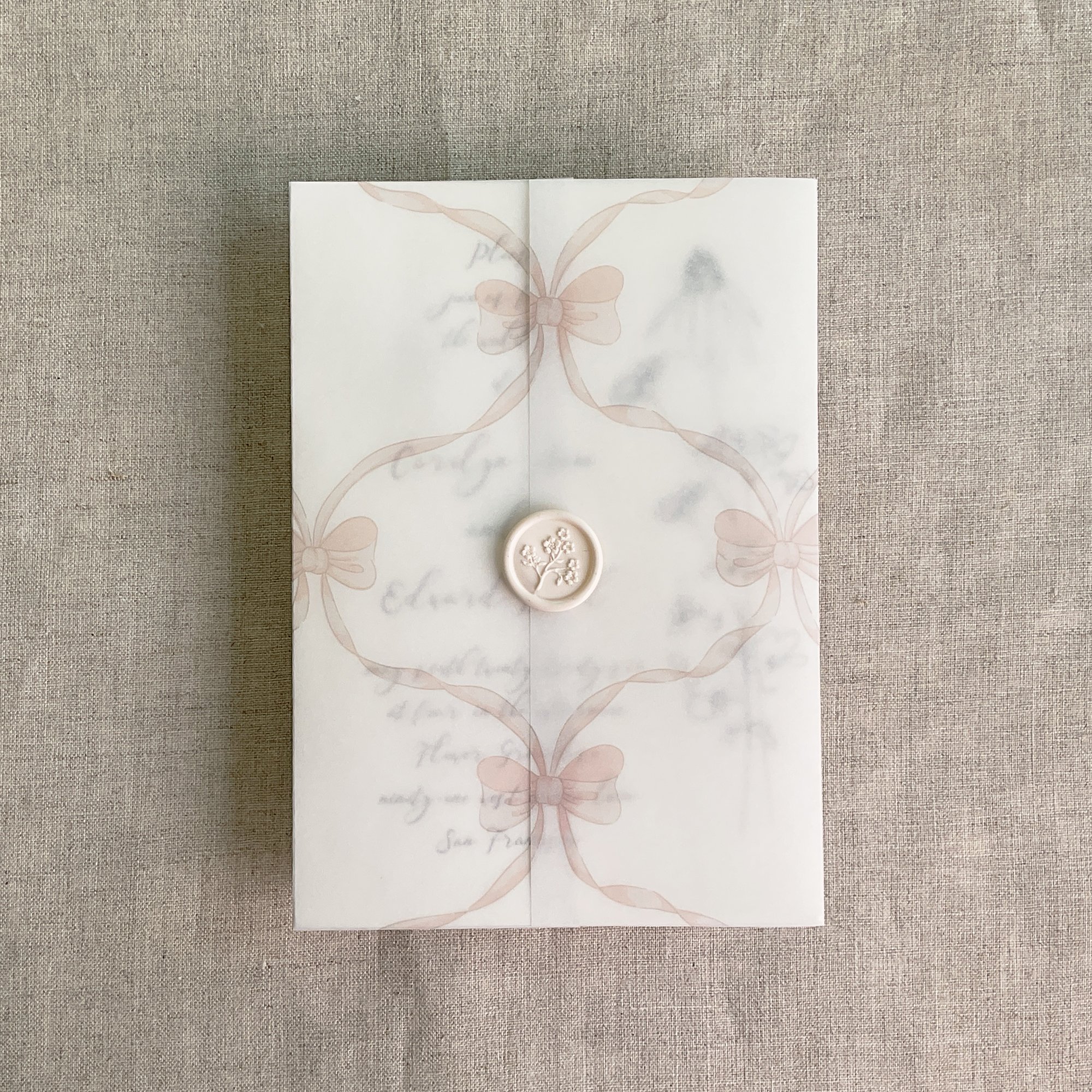 on 29 lb glama natural white translucent vellum paper / Printed in-house by ivory invitations Made In USA