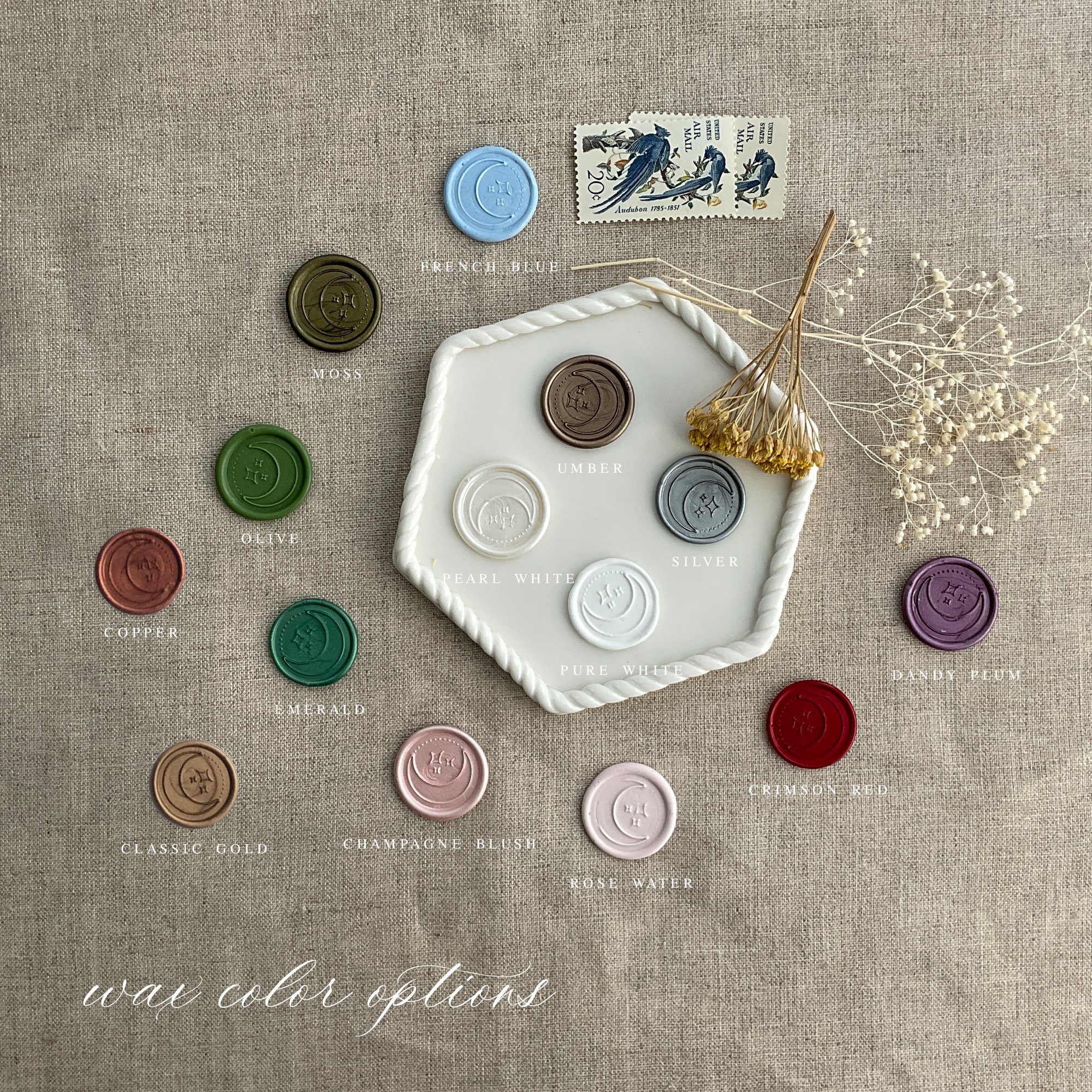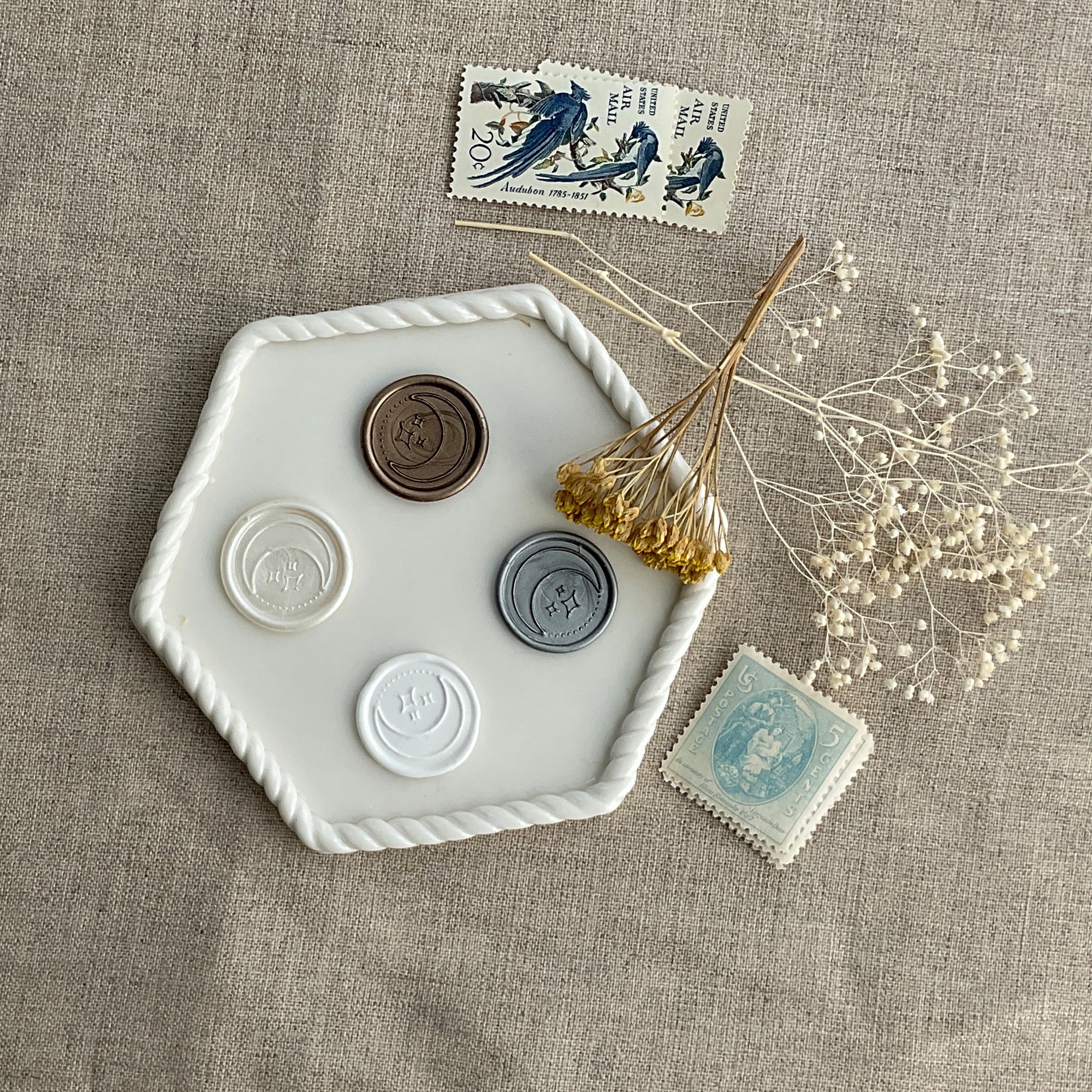 • Each seal is stamped by hand using real wax. Shapes may vary and are not perfectly rounded •