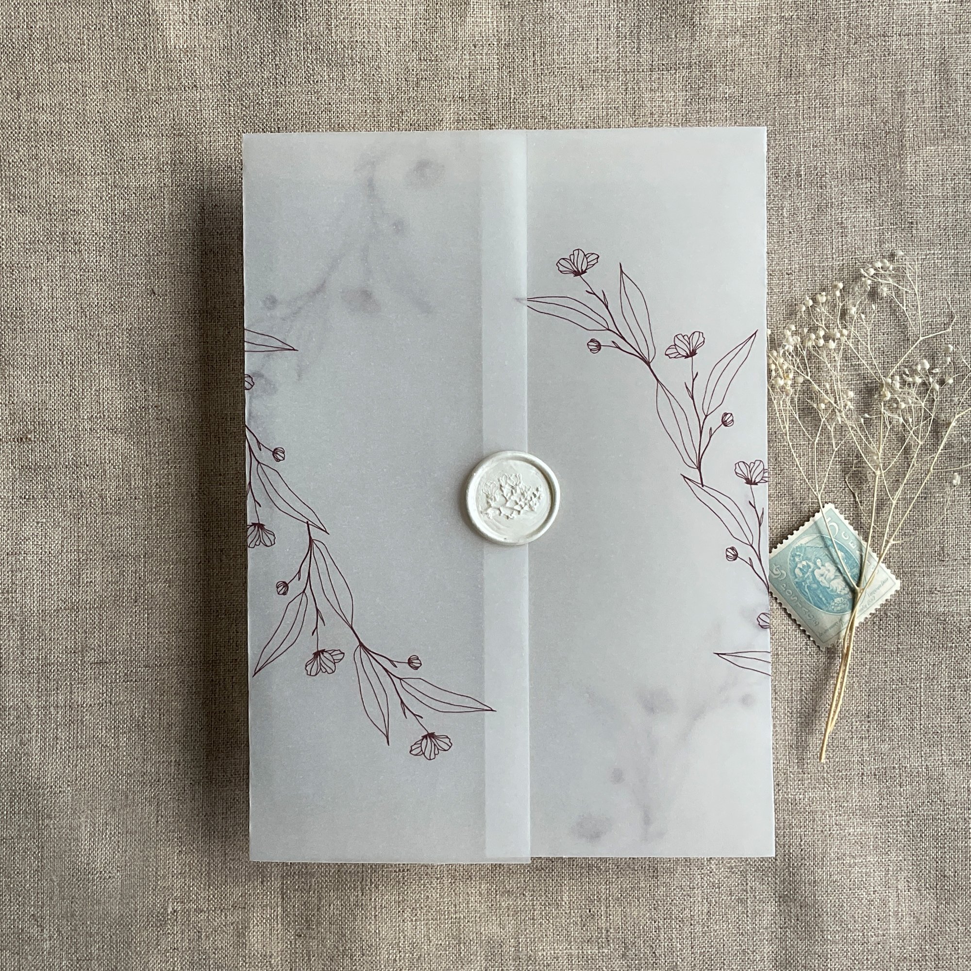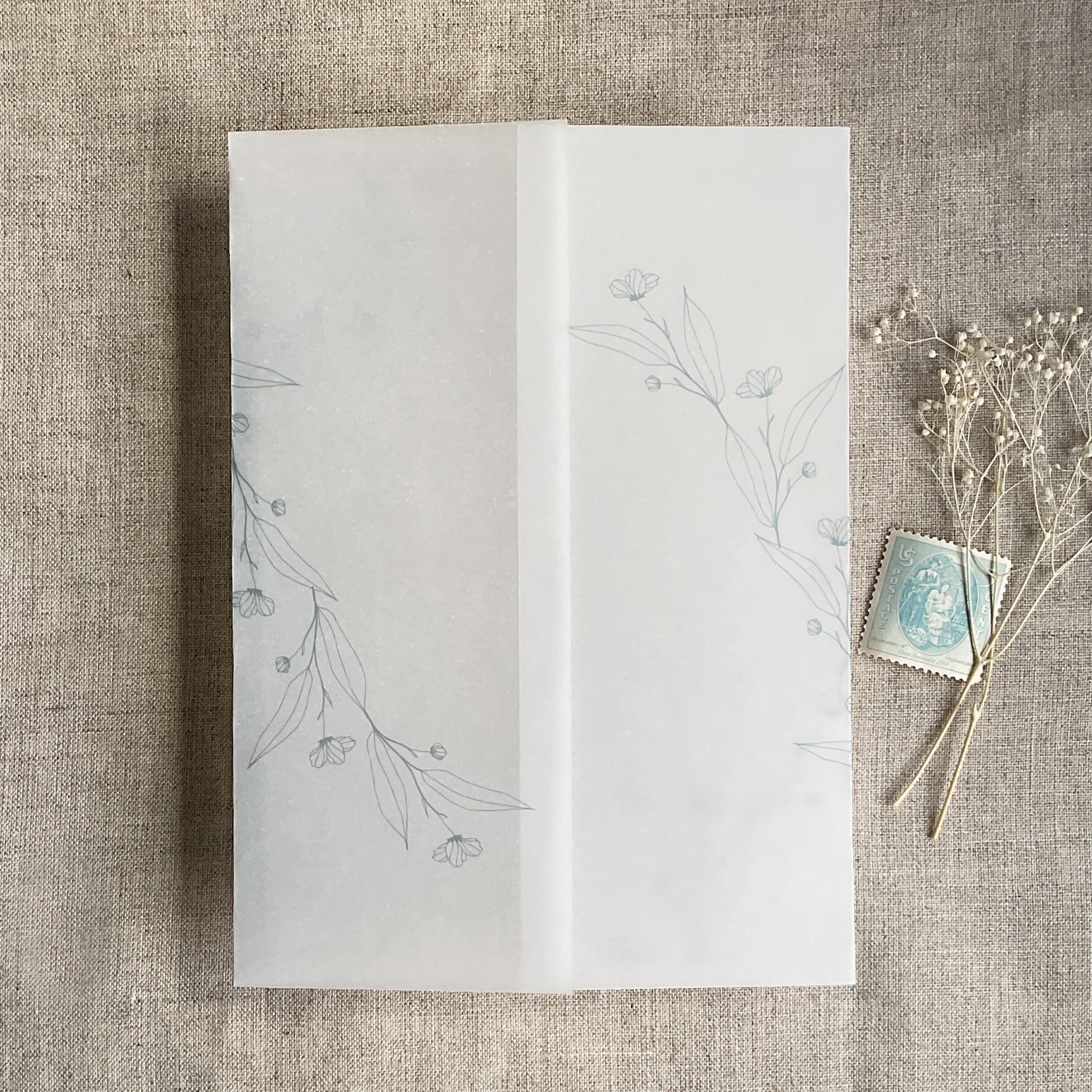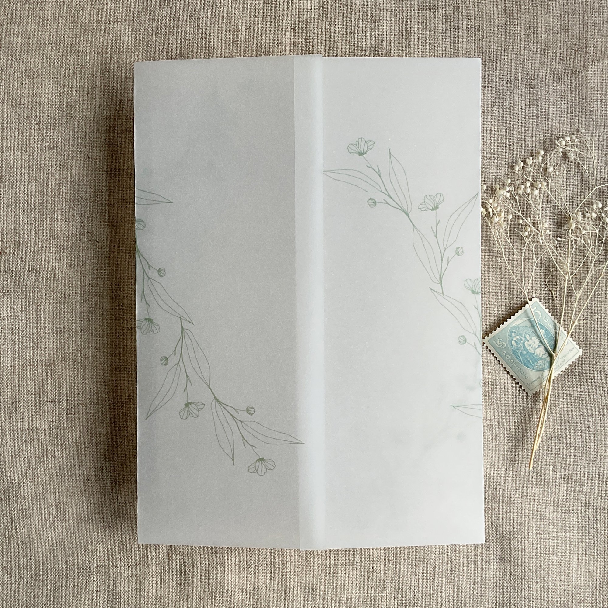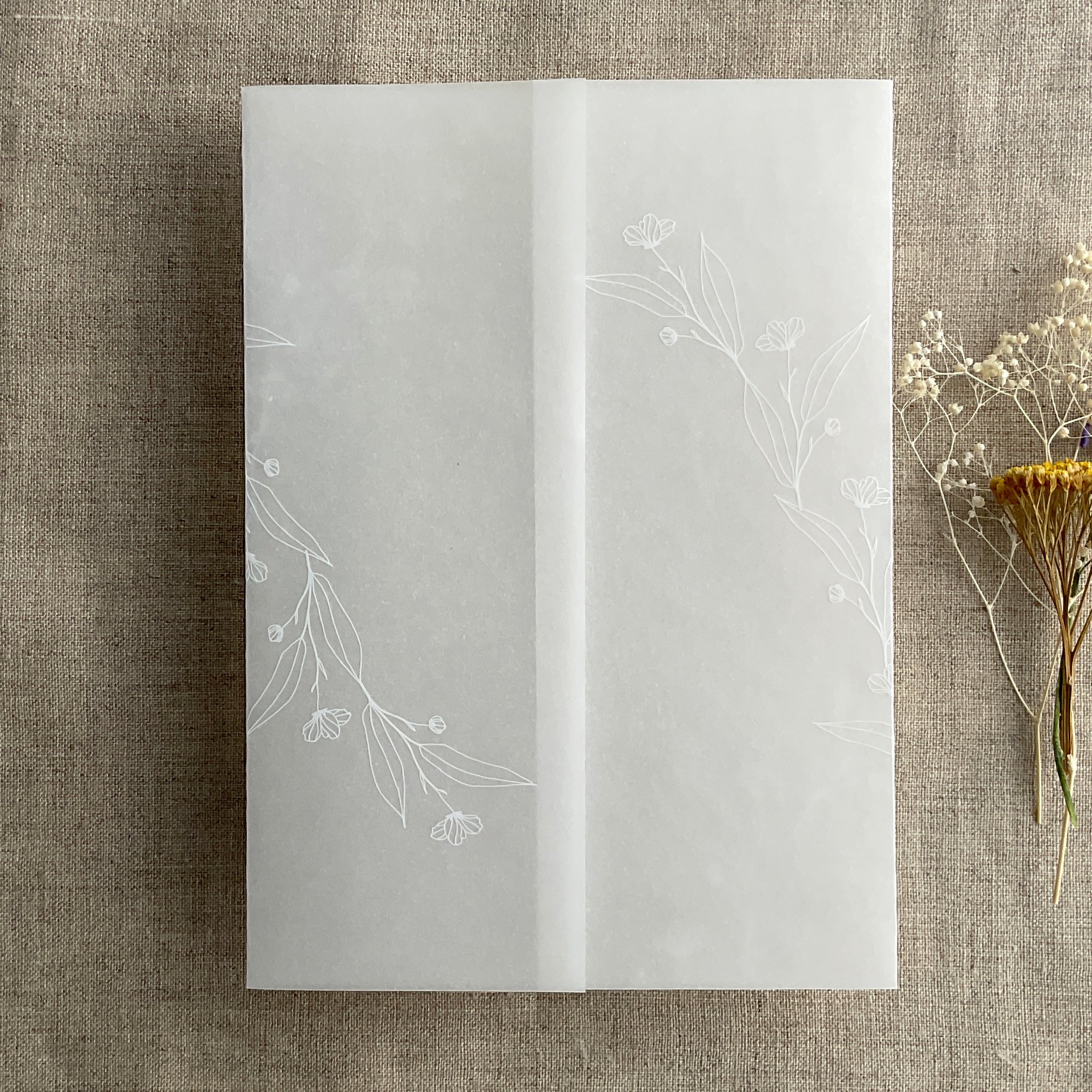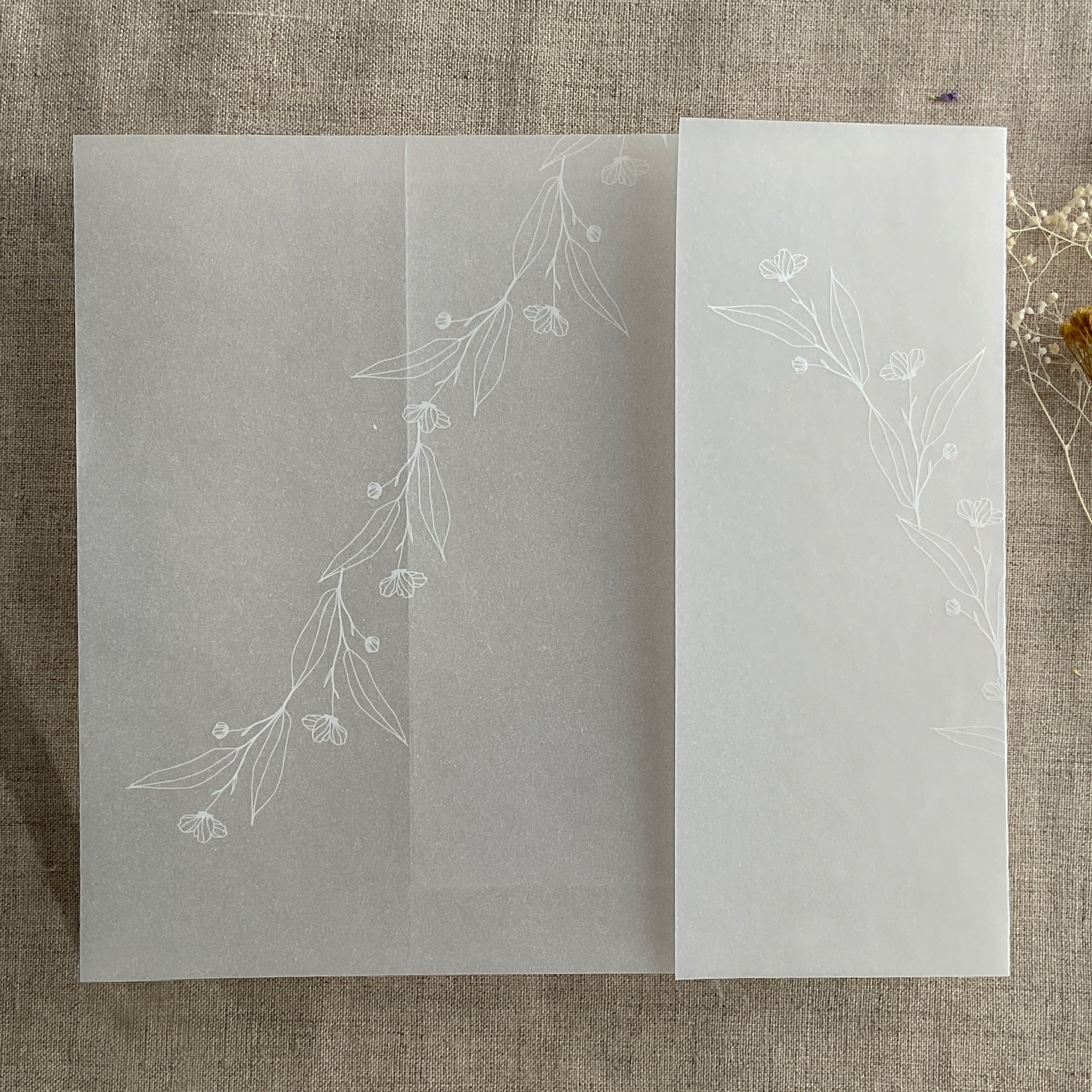 Jessica minimalist floral printed vellum wrap for 5x7 cards PACK of 10