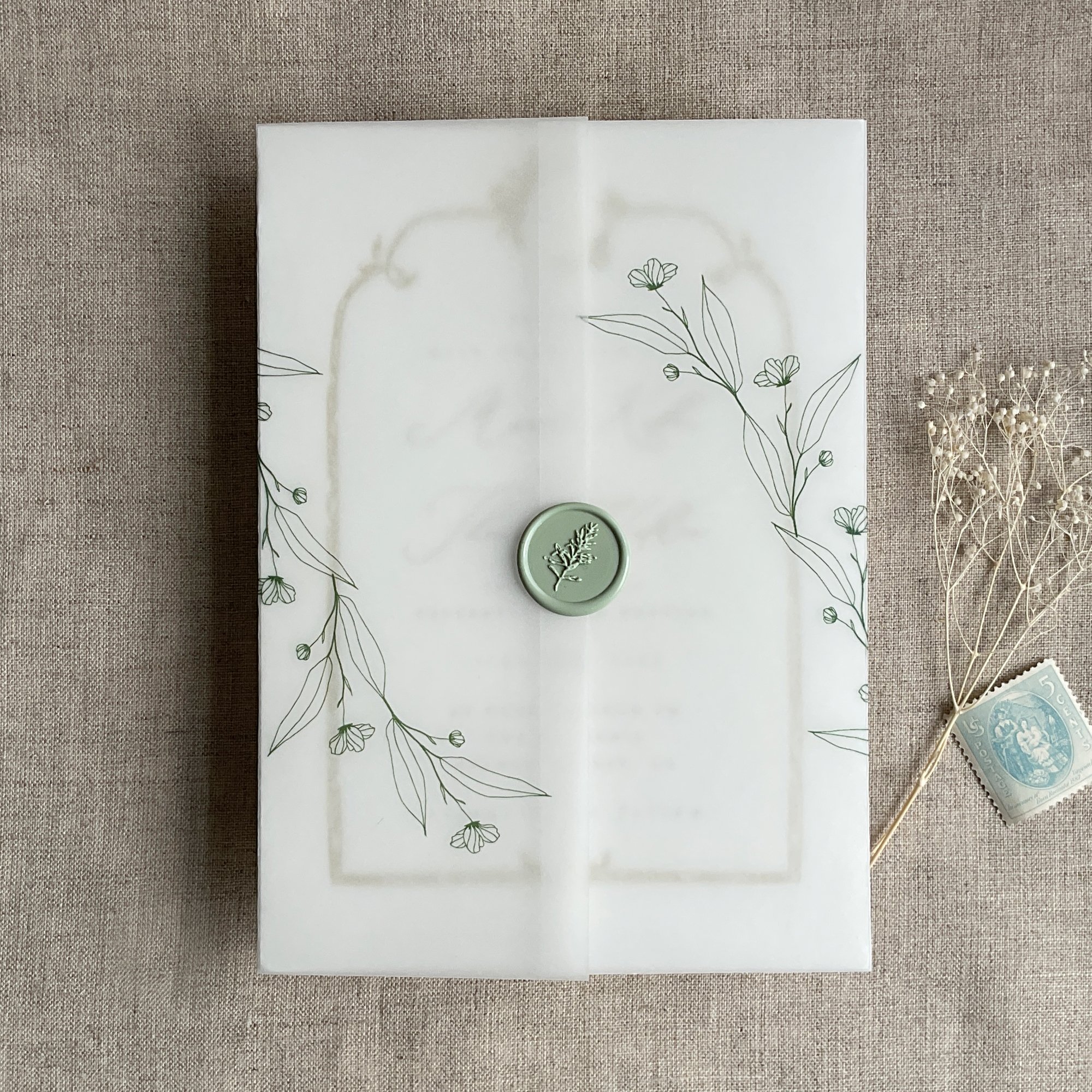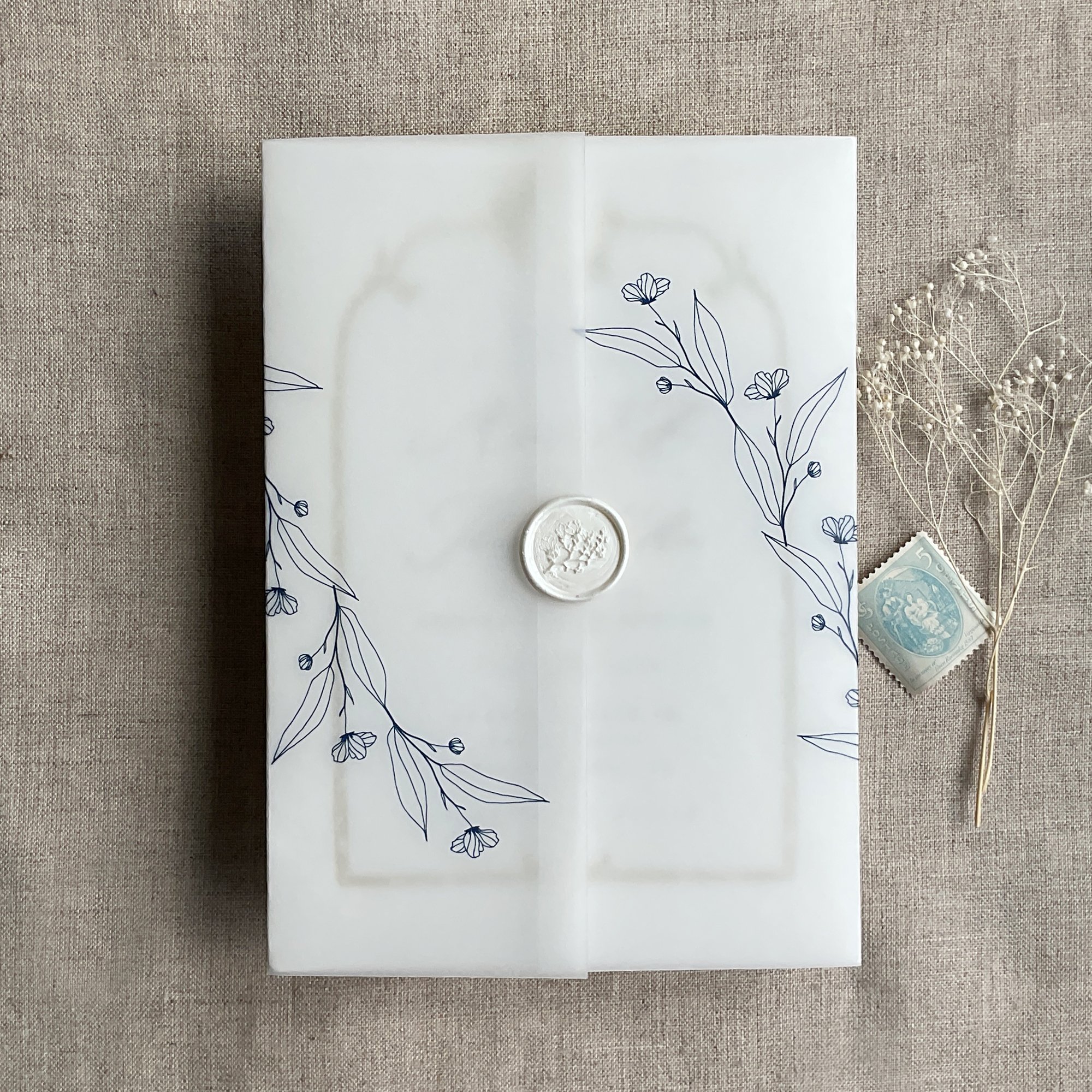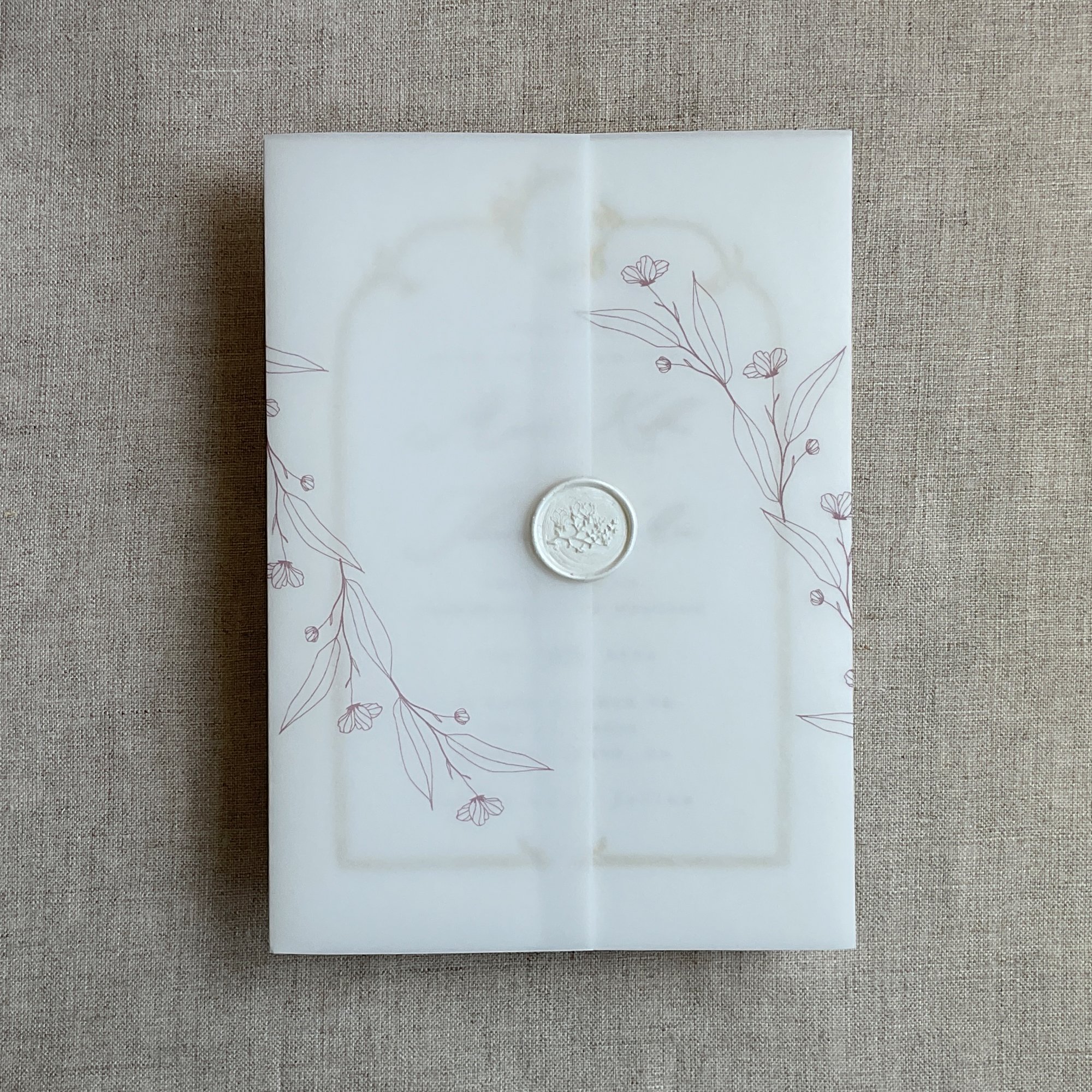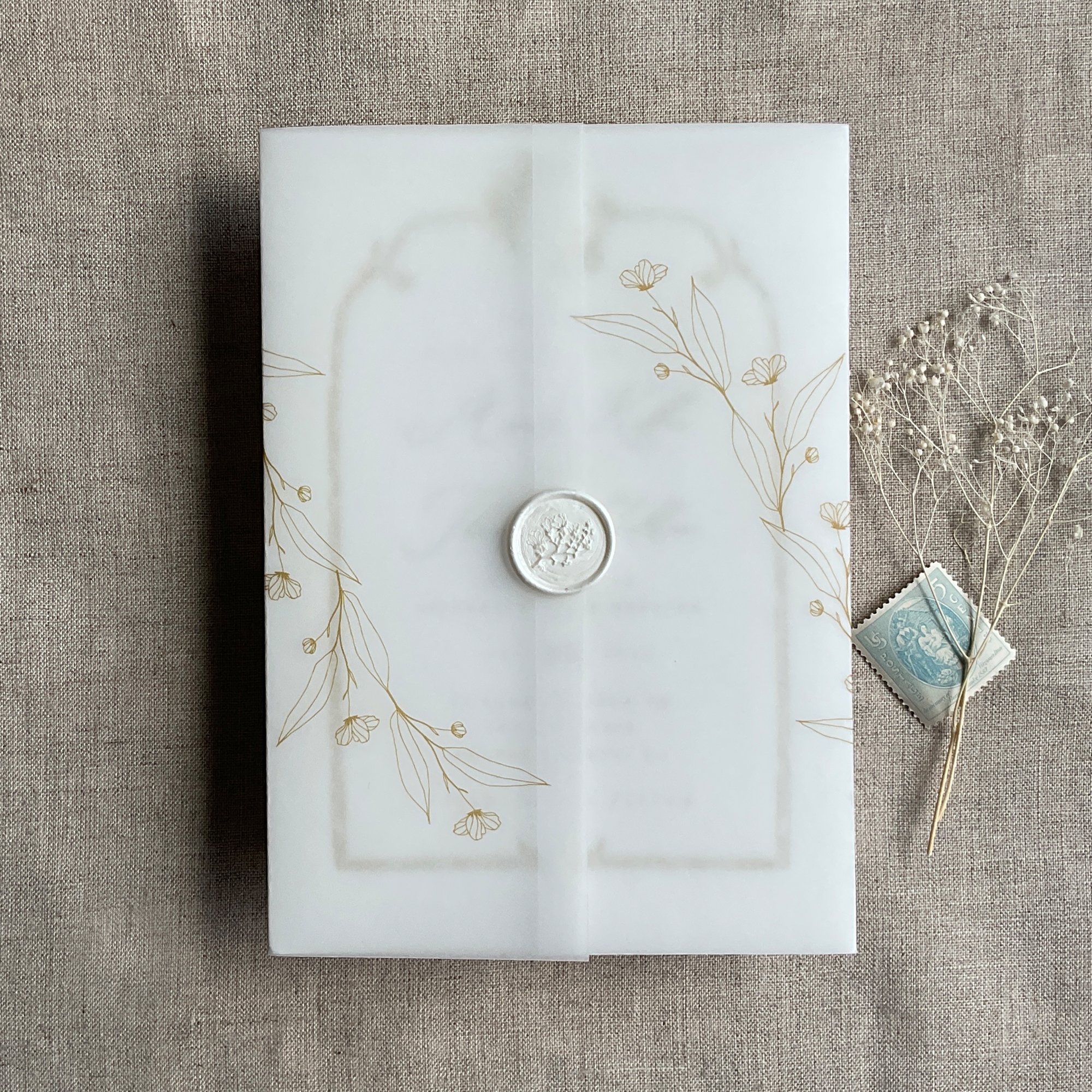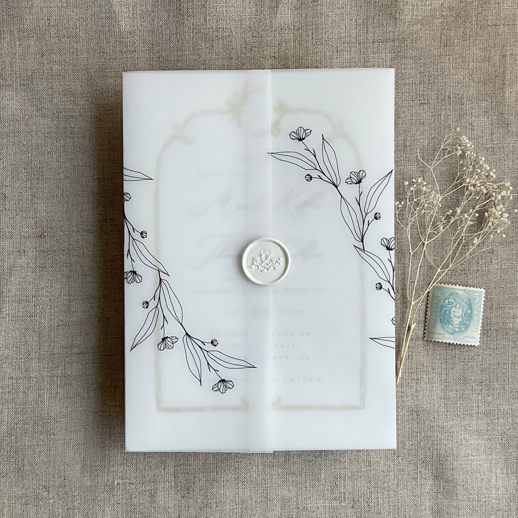 Jessica minimalist floral printed vellum wrap for 5x7 cards PACK of 10
