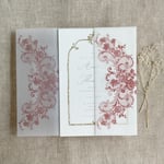 La belle antique rose floral lace printed Vellum wrap for 5x7 card PACK of 10