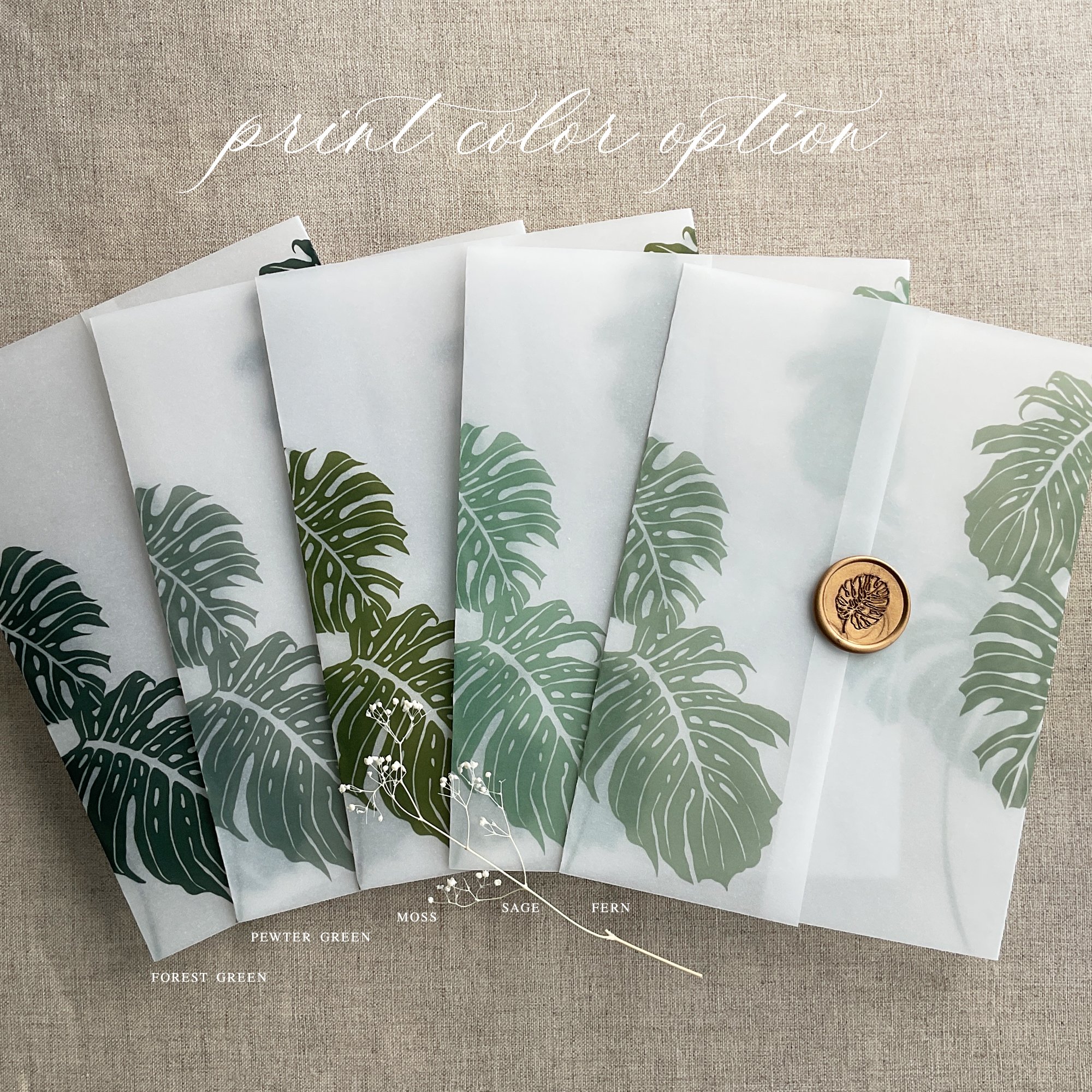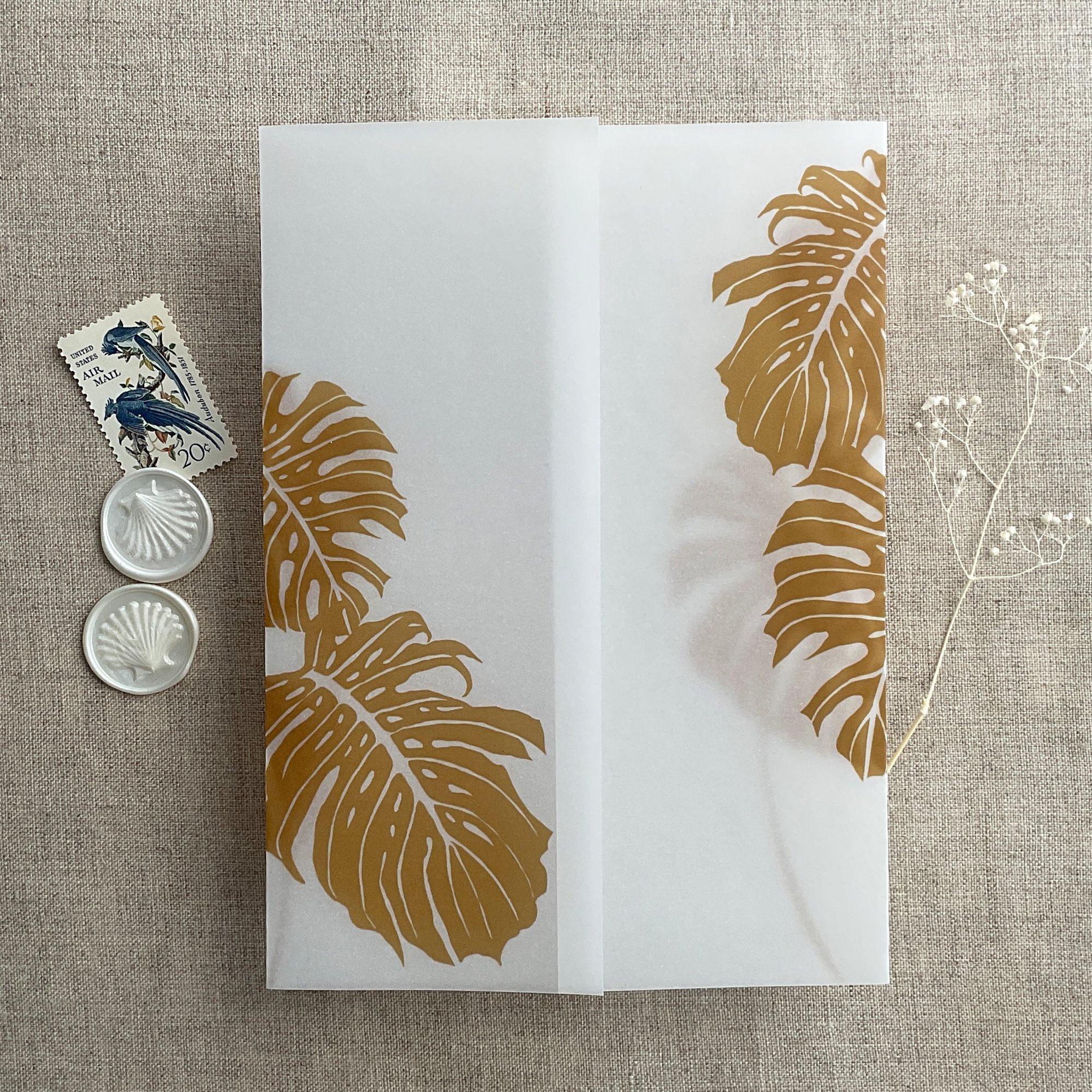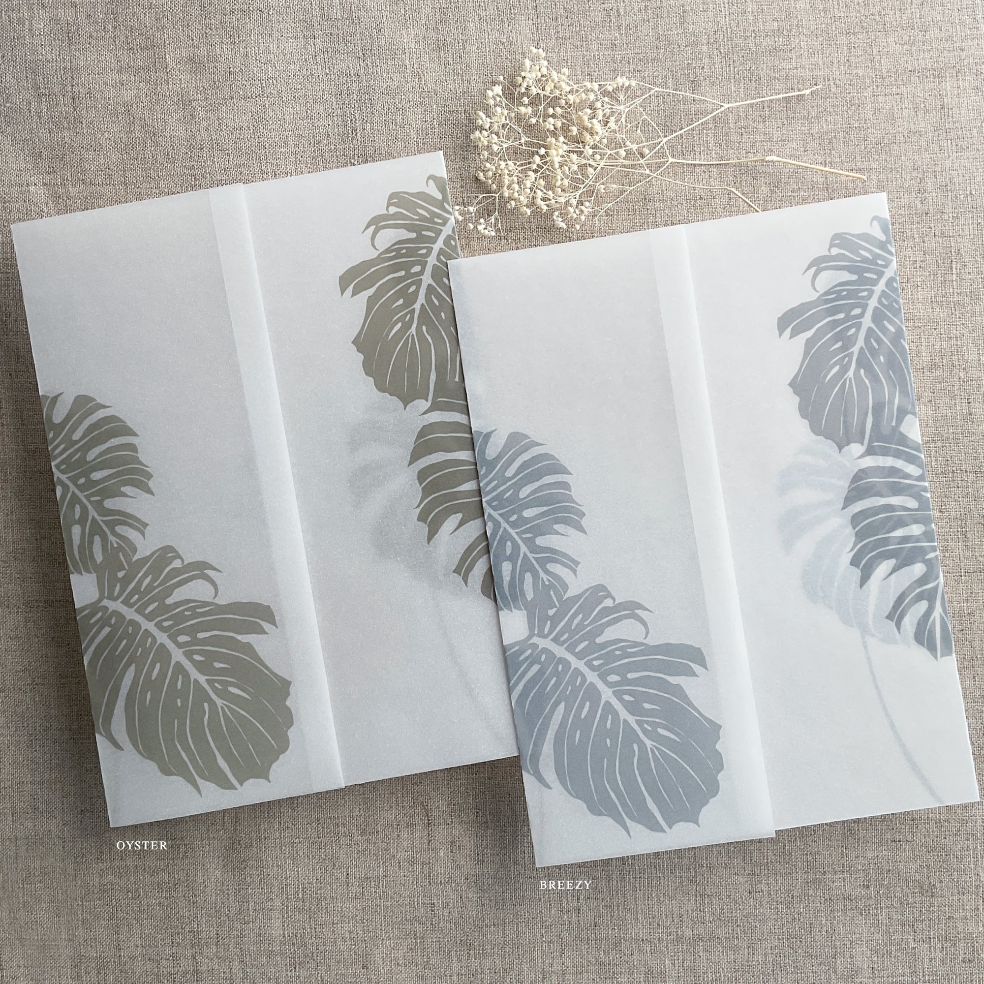 Monstera leaves printed vellum wrap for 5x7 card PACK of 10