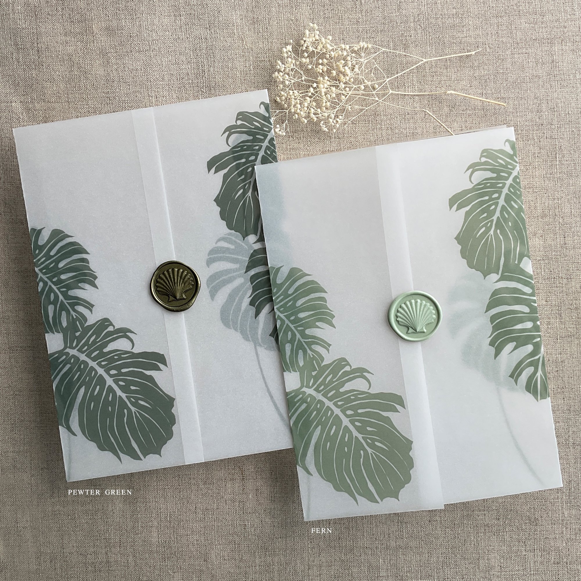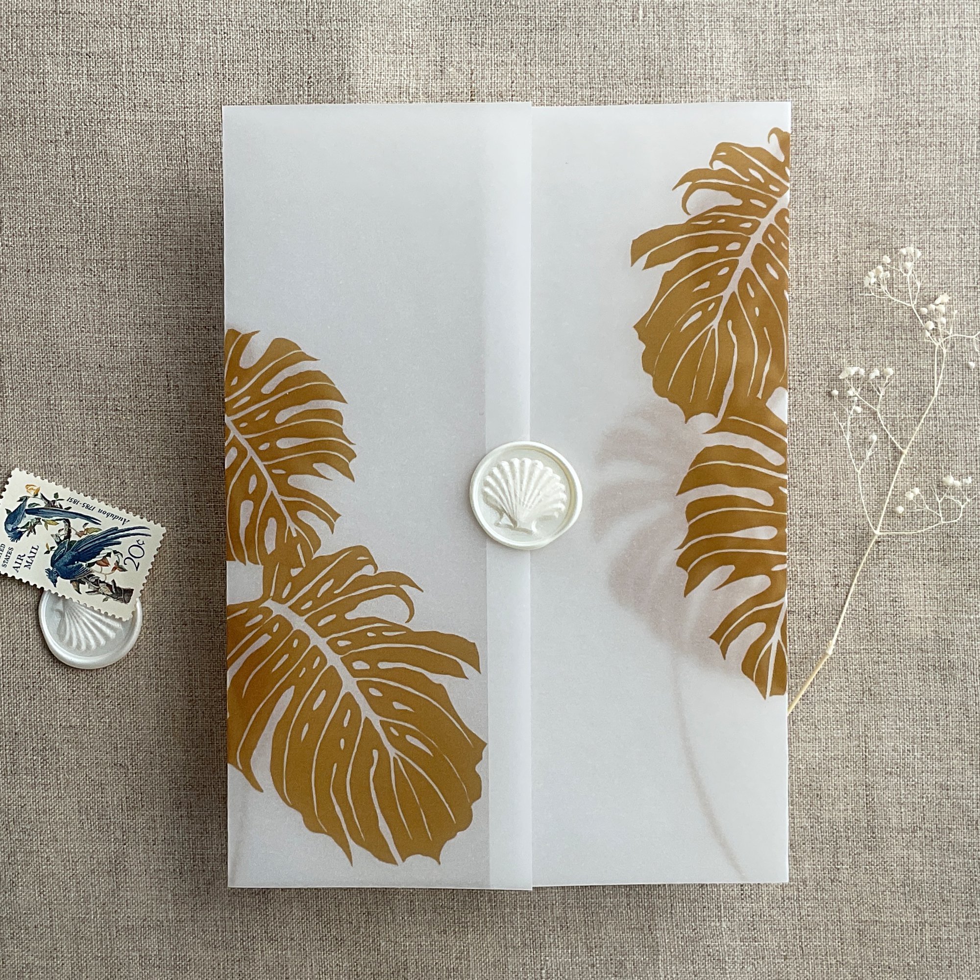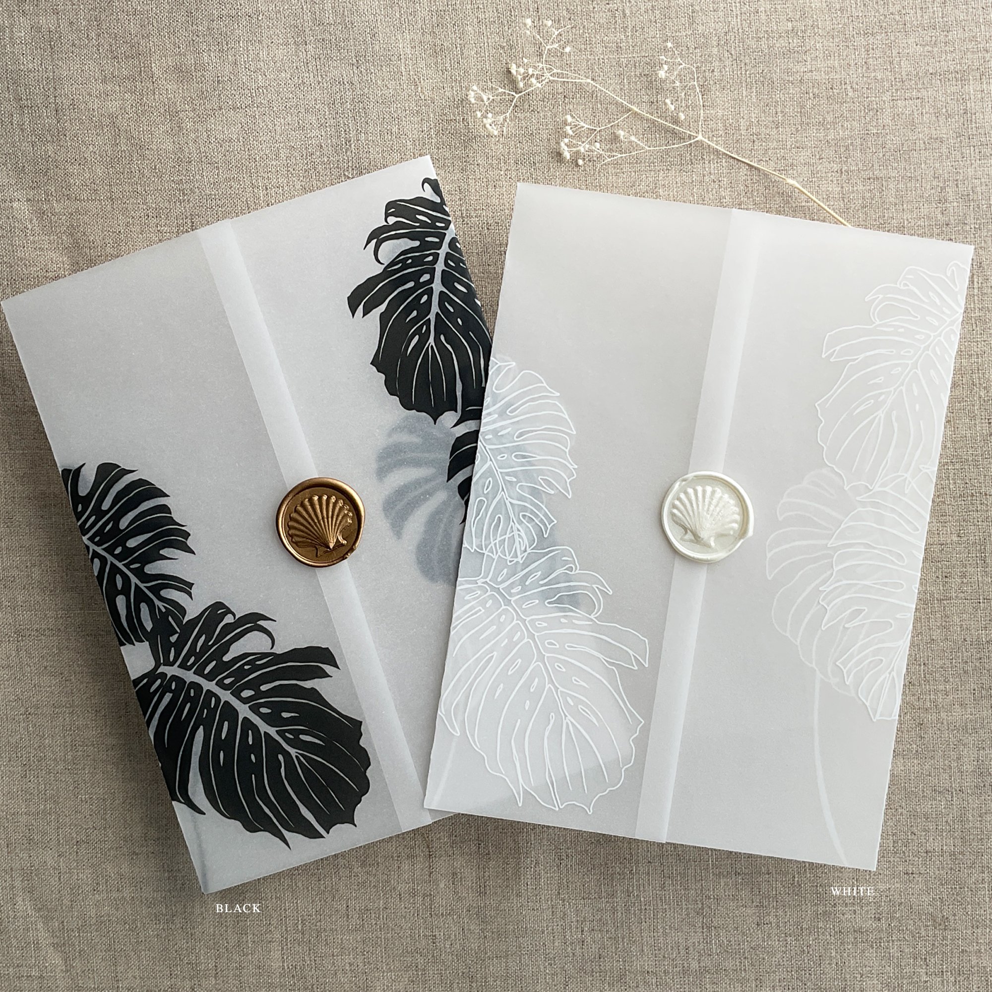 Monstera leaves printed vellum wrap for 5x7 card PACK of 10