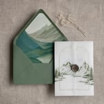 10- 6.5"x9" for A7 euro flap envelope) 1 sided color printing on 80 lb white felt textured text weight paper / Printed in-house by ivory invitations Made In USA.