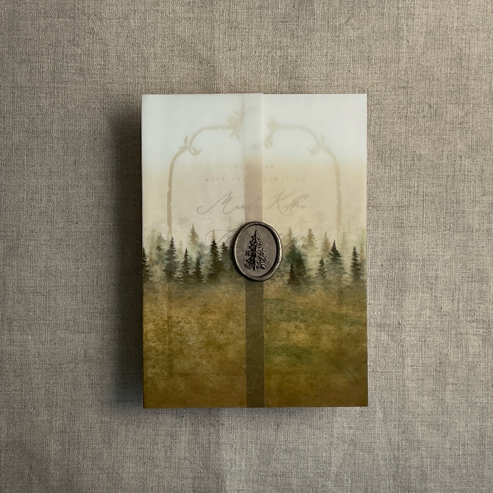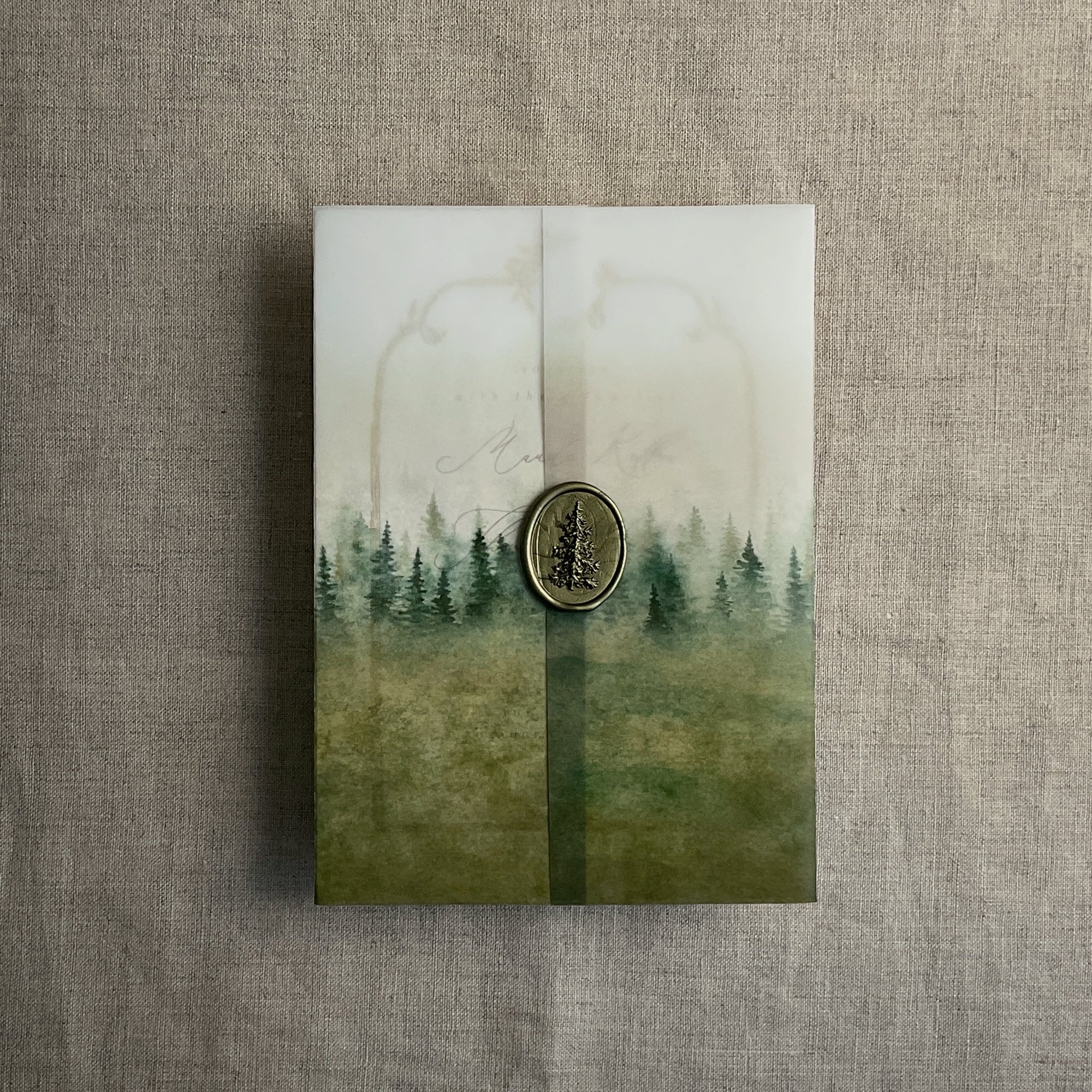 Ombre Rustic forest printed vellum wrap for 5x7 cards PACK of 10