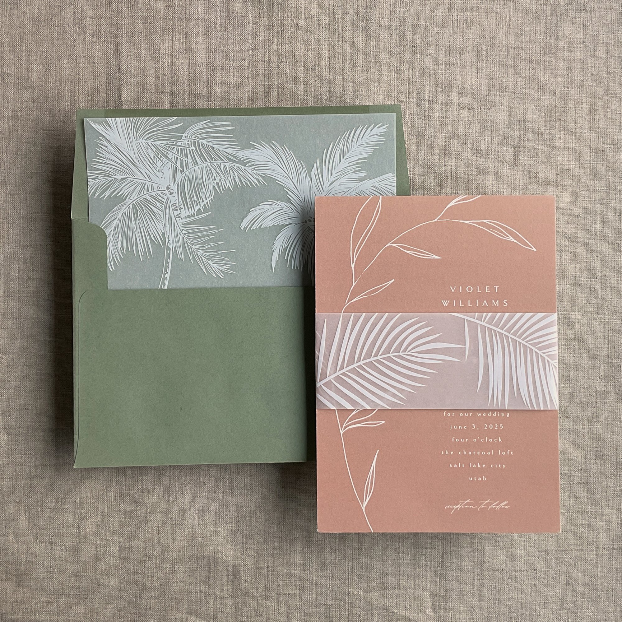 Palm leaf white ink printed vellum paper belly bands PACK of 10