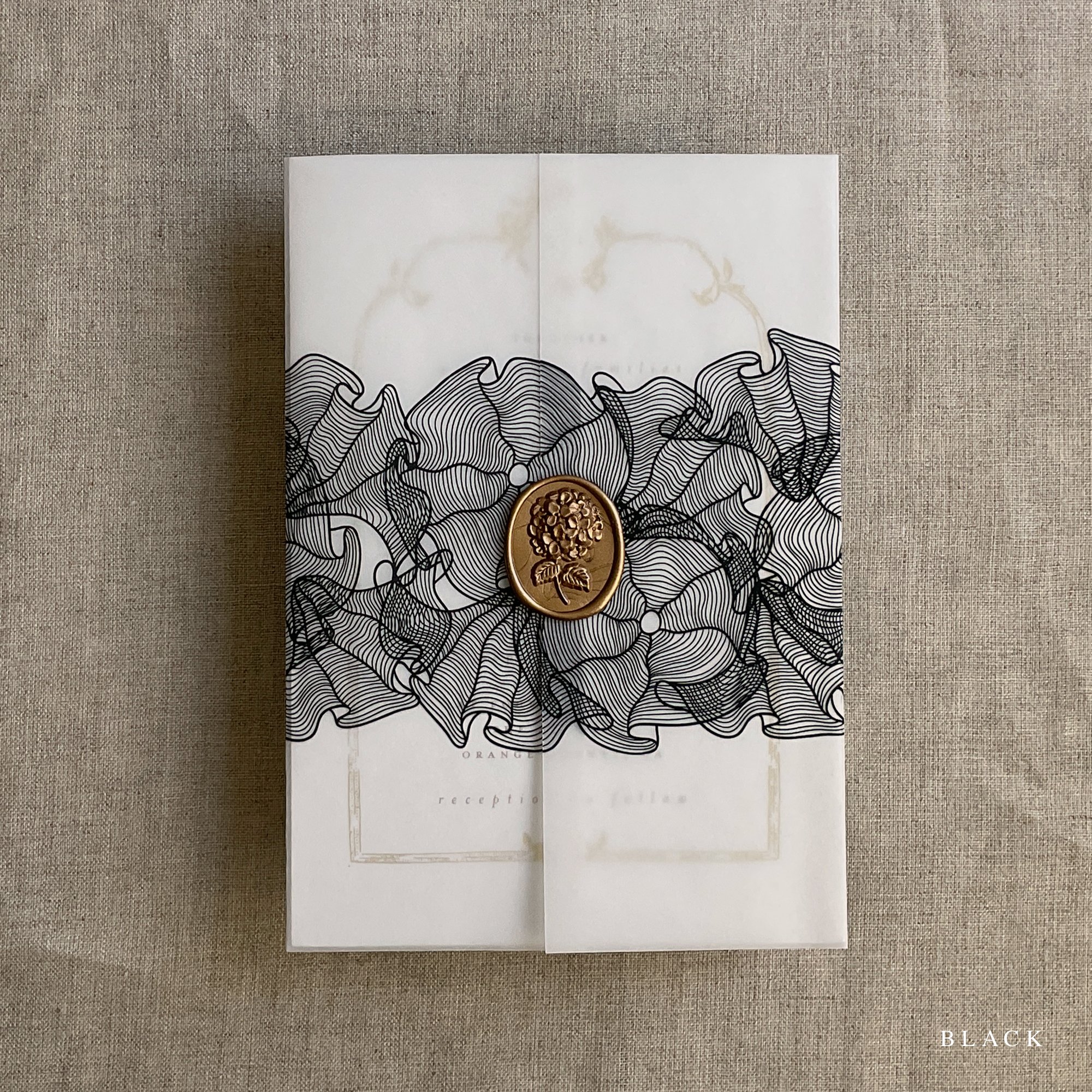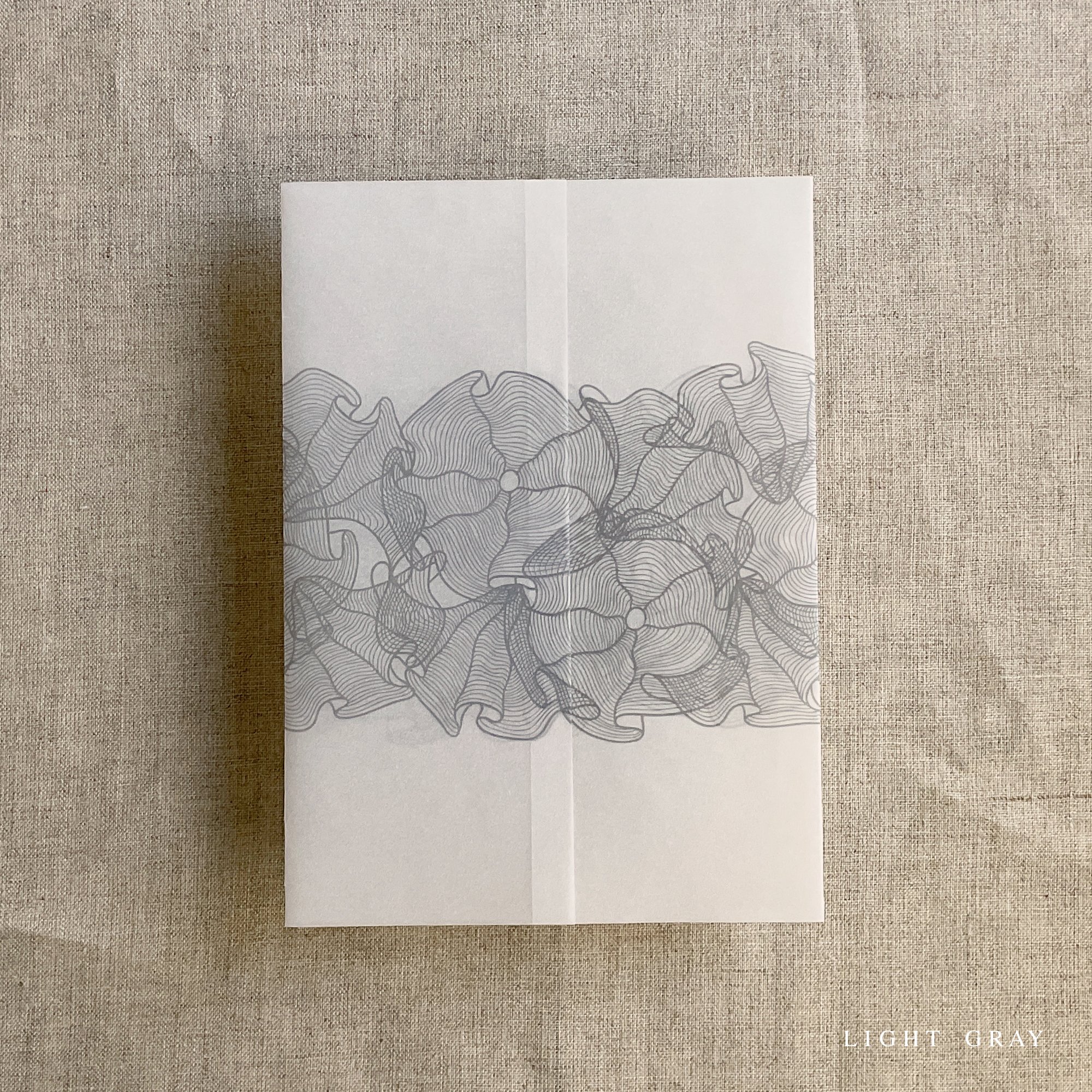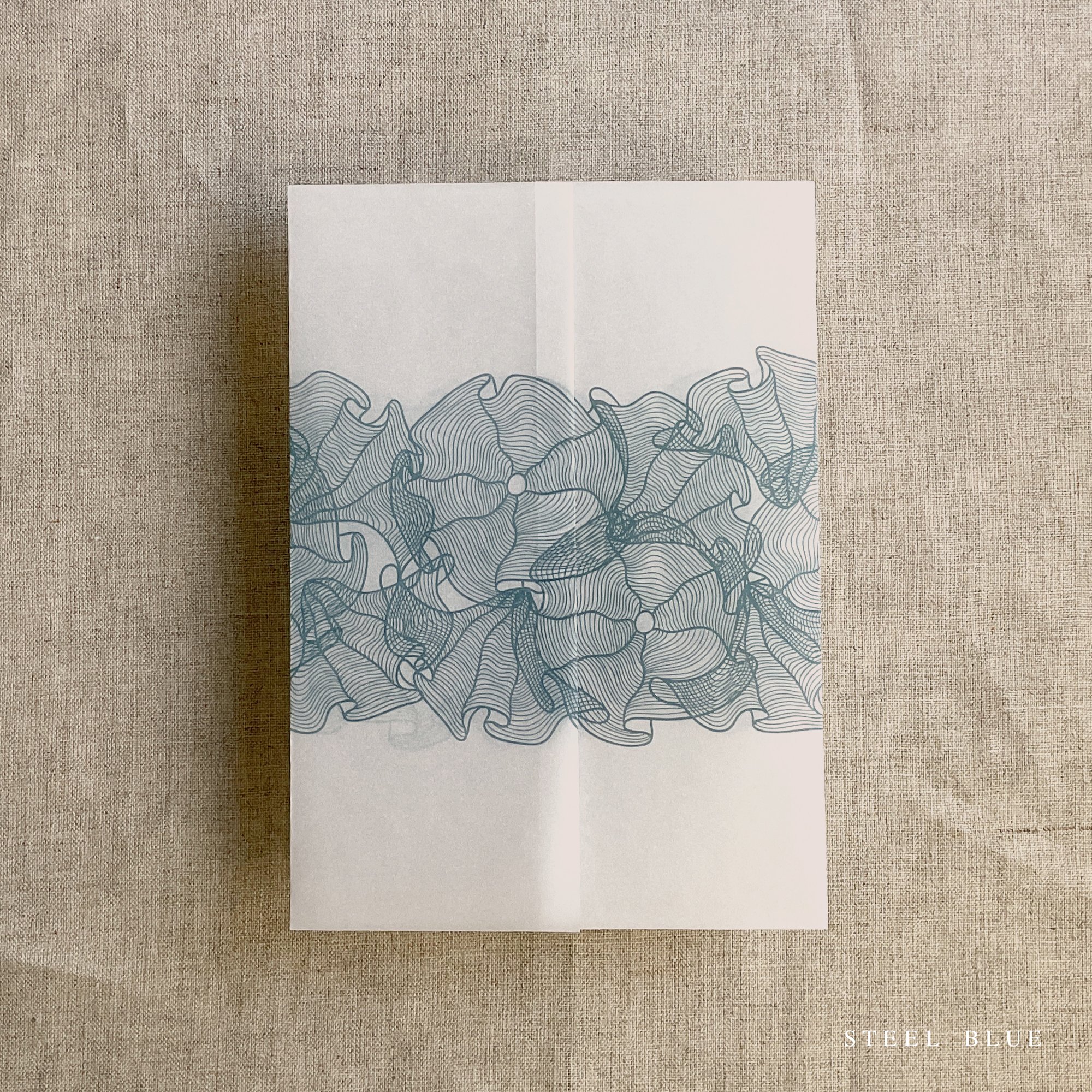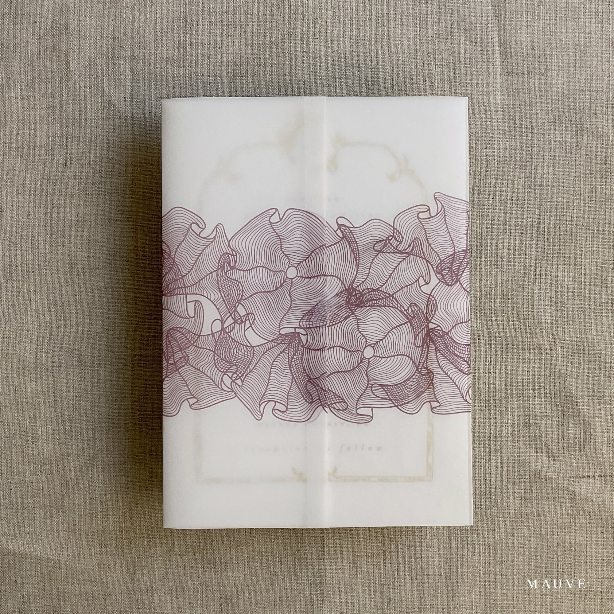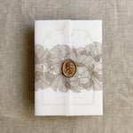 on 29 lb glama natural white translucent vellum paper / Printed in-house by ivory invitations Made In USA