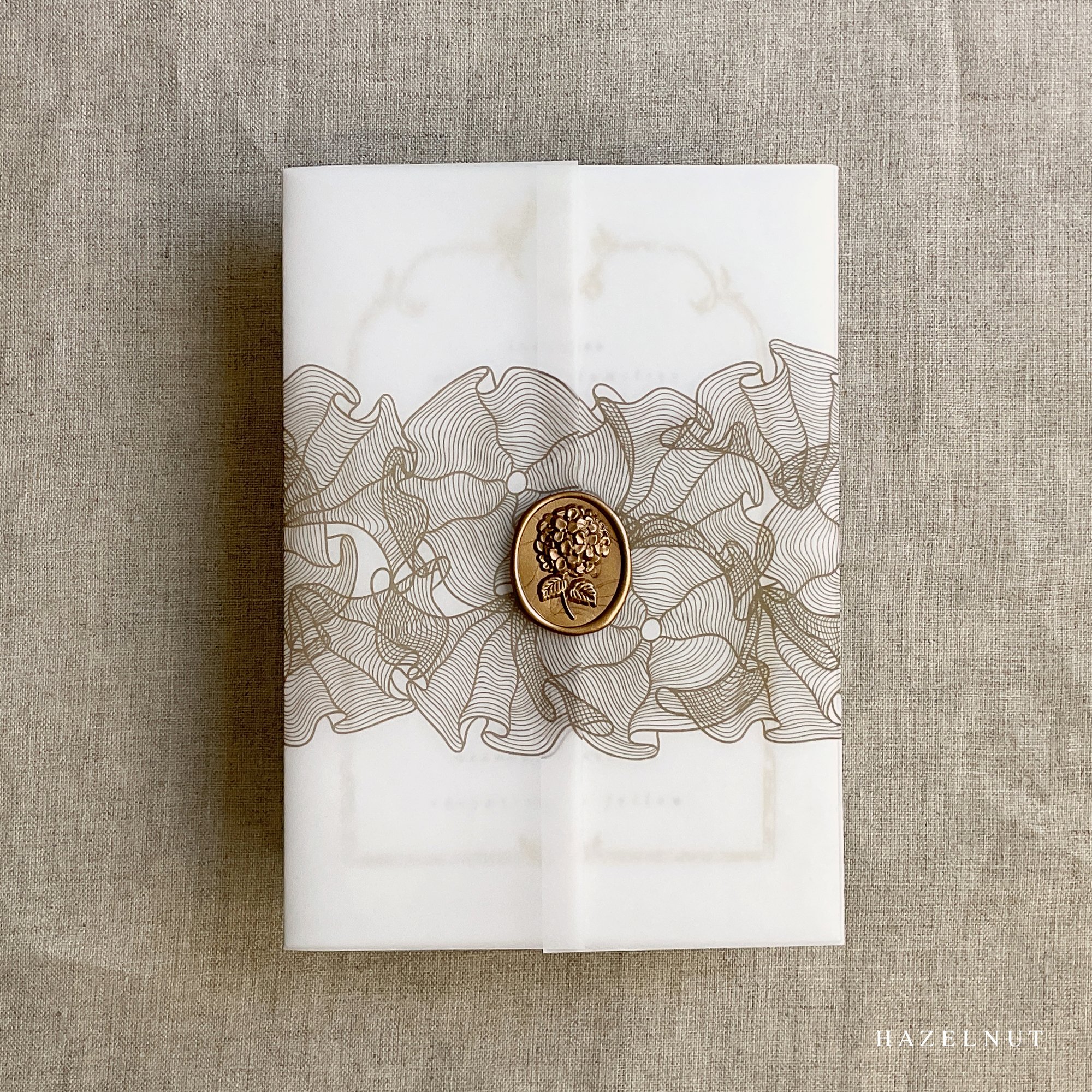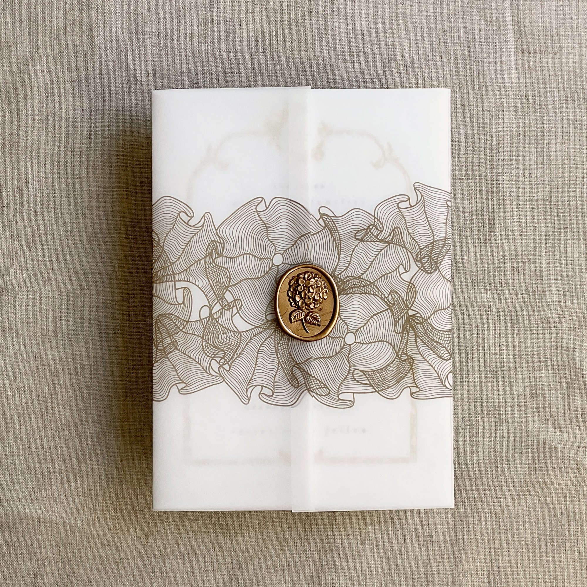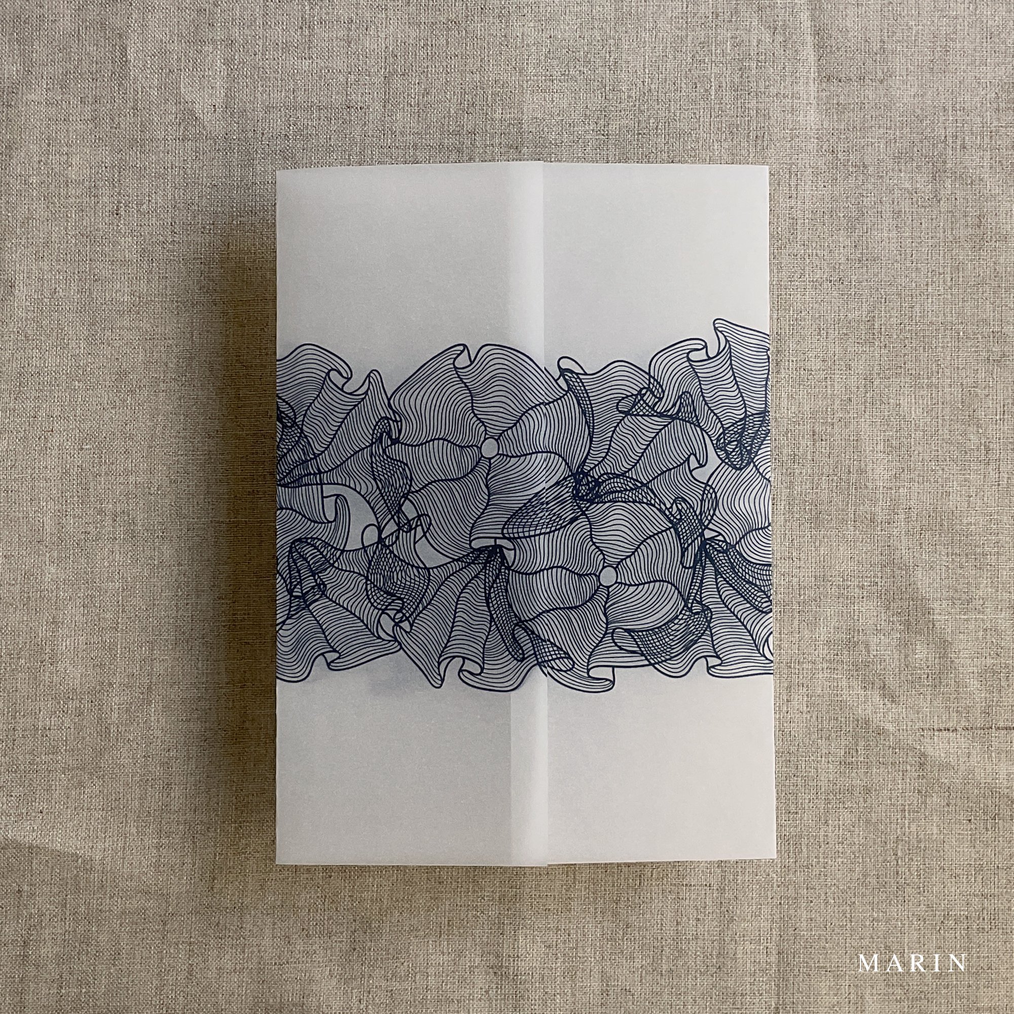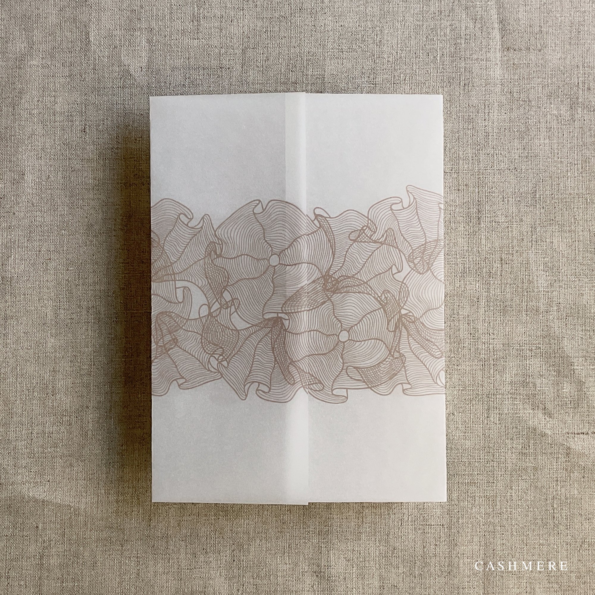 on 29 lb glama natural white translucent vellum paper / Printed in-house by ivory invitations Made In USA