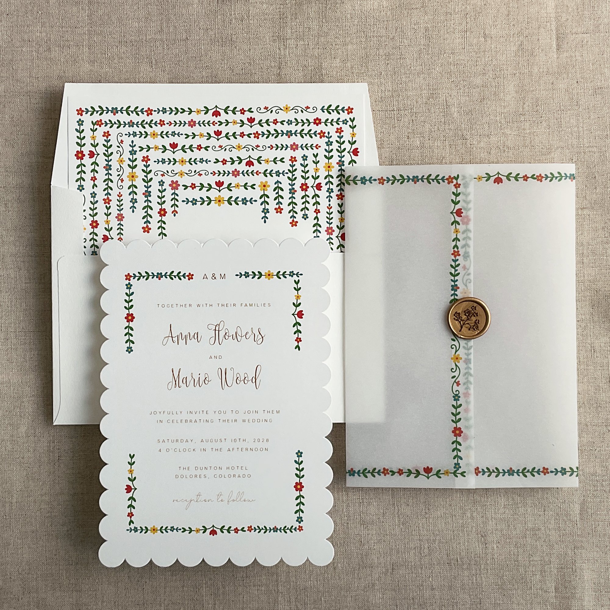 on 29 lb glama natural white translucent vellum paper / Printed in-house by ivory invitations Made In USA