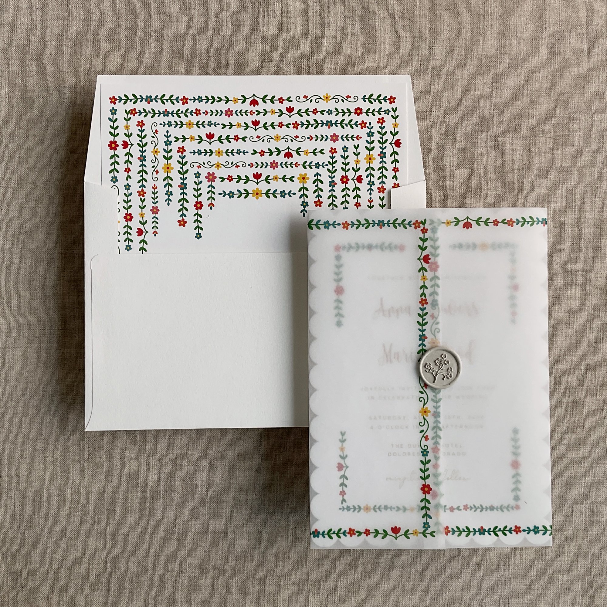 10- 6.5"x9" for A7 euro flap envelope 1 sided color printing on 91 lb soft white text weight paper / Printed in-house by ivory invitations Made In USA.