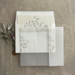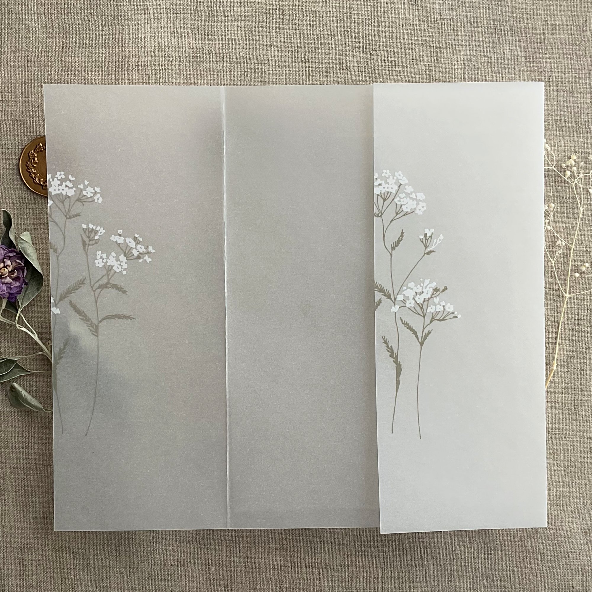 White flowers white ink printed vellum wrap for 5x7 inches card PACK of 10